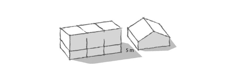 Bebyggelsen består udelukkende af tæt-lav bebyggelse og skal etableres som længer, som i princippet vist på Figur 11.