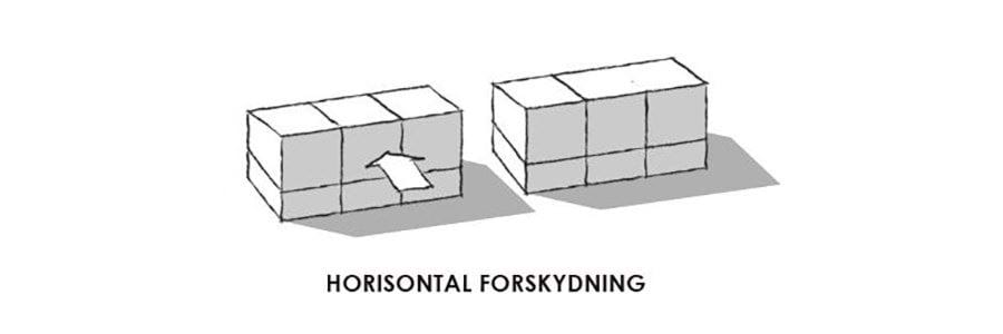For at opnå en vis variation og sammenhæng i tæt-lavbebyggelsen, skal der ske en tydelig forskydning i facader, der er længere end 45 m, som vist i princippet på Figur 13.