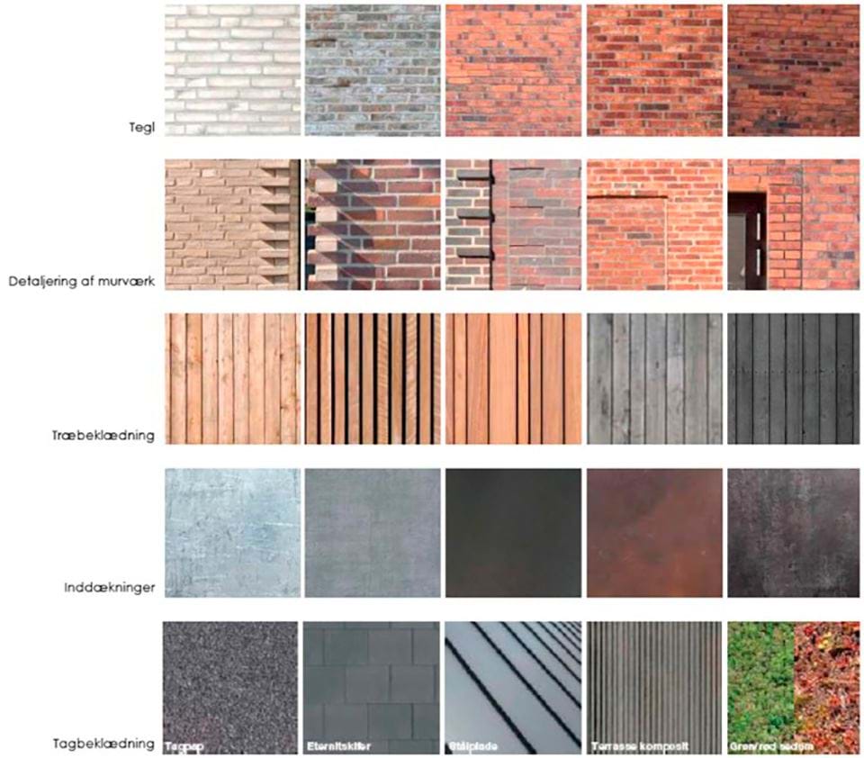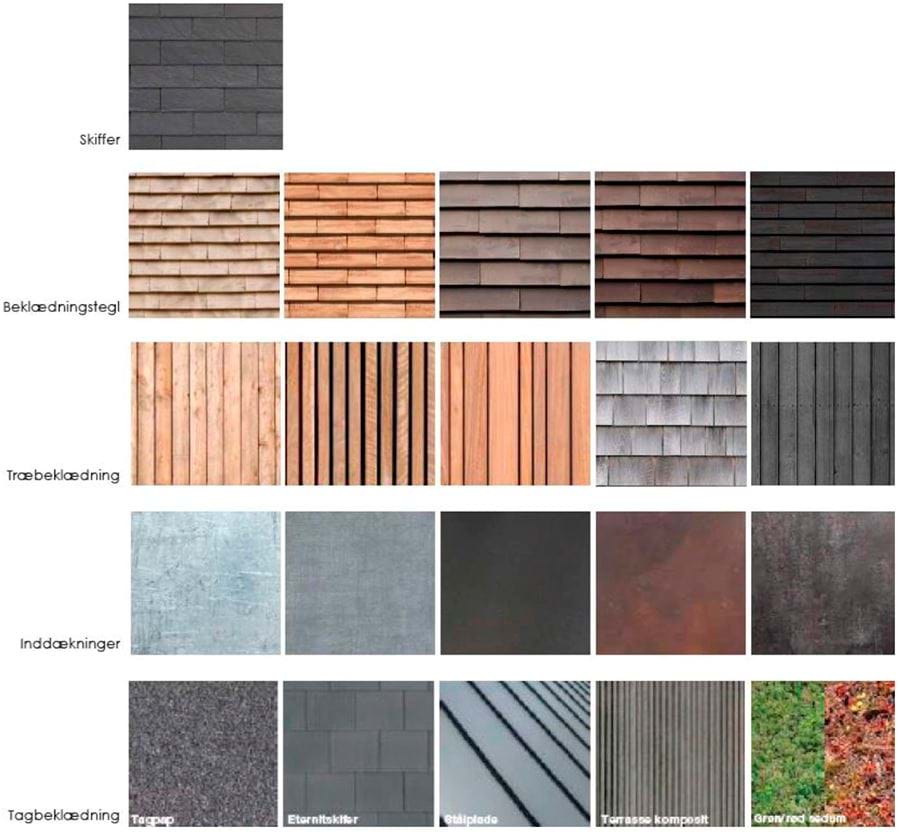 Figur 15: Facadematerialer og tagbeklædning i delområde 1.