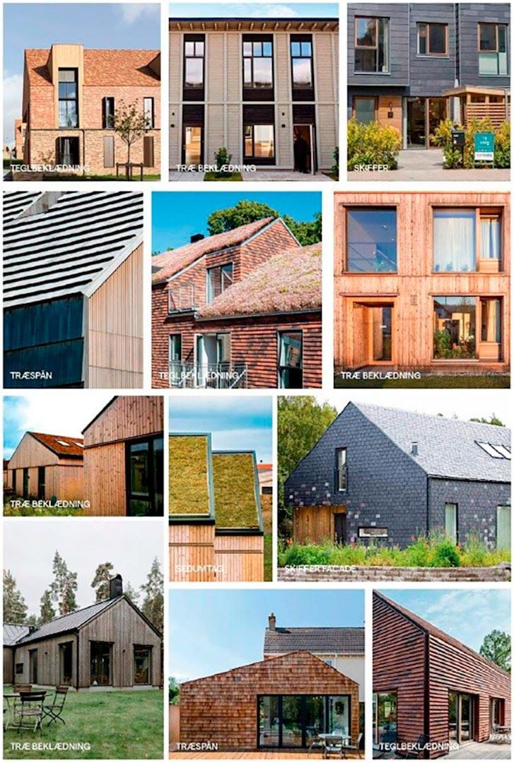 Figur 17: Eksempler på facadematerialer samt tagudformning i delområde 1.