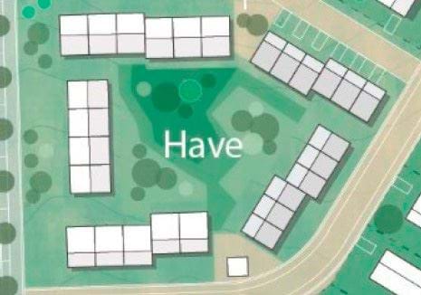 Kvarteret Havebyen ligger i områdets nordøstlige del og grænser op mod det eksisterende parcelhusområde. Bebyggelsens højde er lav, så der skabes en naturlig skalamæssig overgang til naboområdet. Bebyggelsen etableres som klynger omkring et fællesrum. Her grænser de private haver op til et mødested, der samler beboerne fra klyngen. Vejadgang etableres på ydersiden af klyngerne .