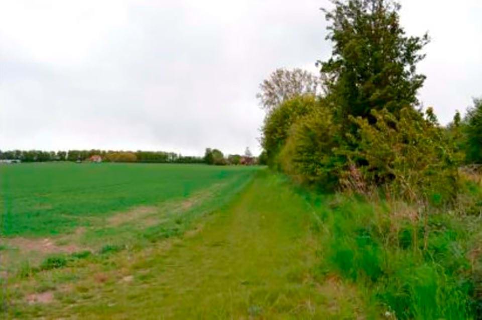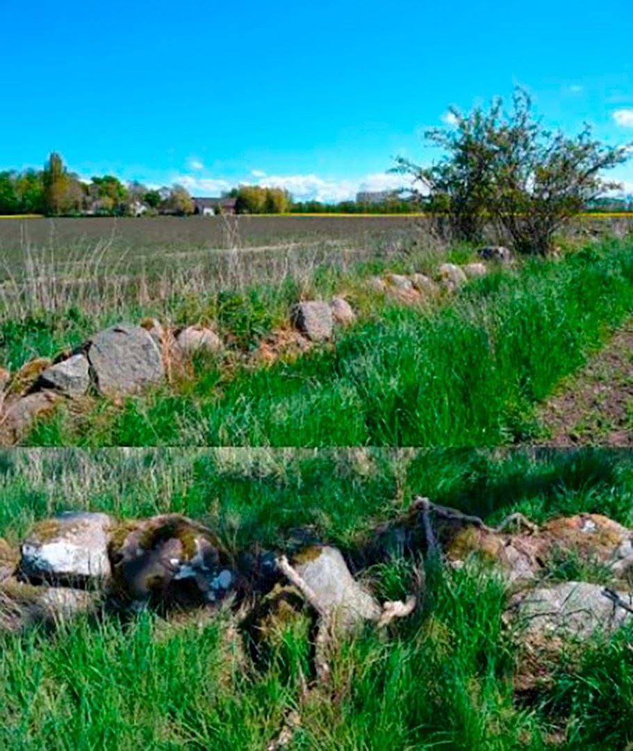 Figur 4: I den nordvestlige del af området ligger et beskyttet stendige. Et landskabselement med både kulturhistorisk og naturmæssig høj værdi. Diget skal bevares og beskyttes i den fremtidige udvikling.