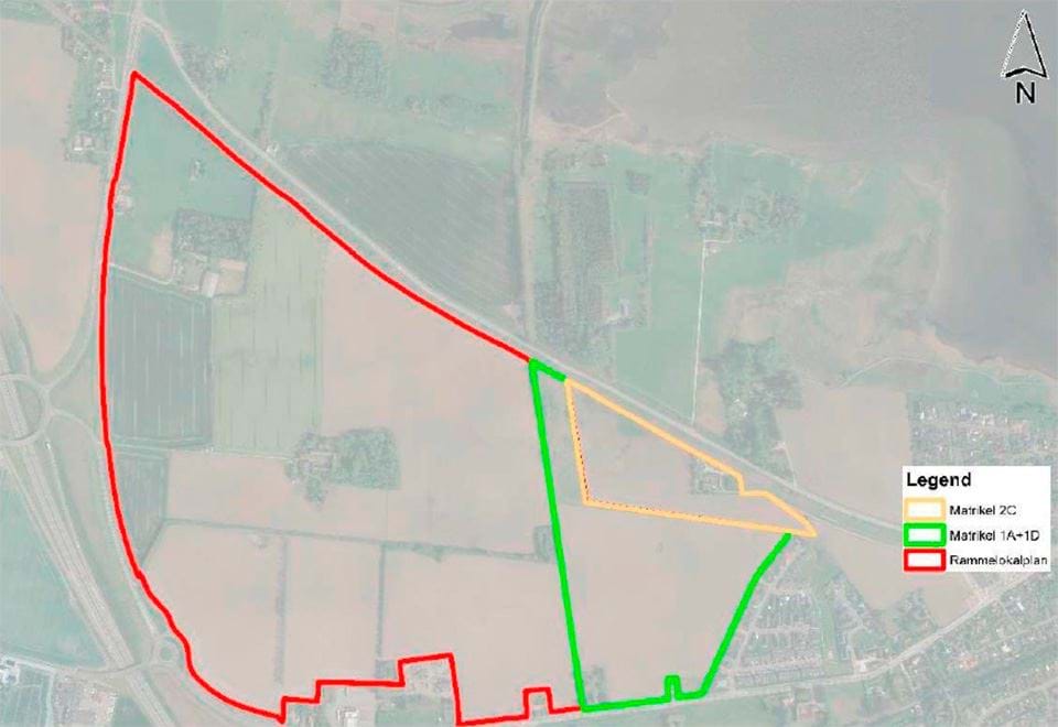 Figur 76a Oversigt over lokalplansområderne (Matrikel 1A, 1D og 2C udgør det byggeretsgivende lokalplansområde)