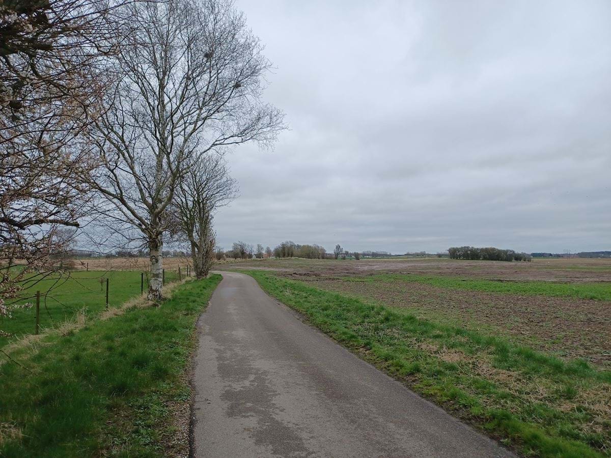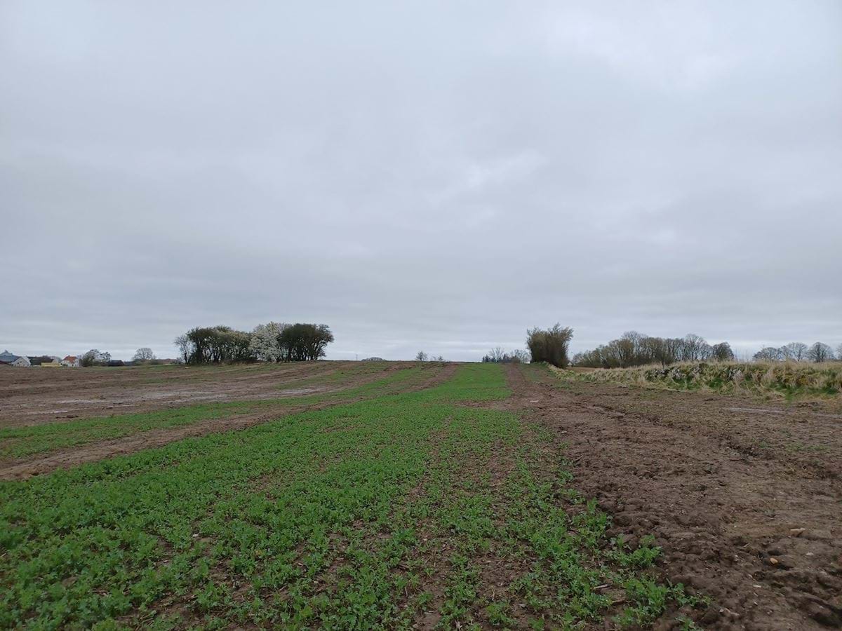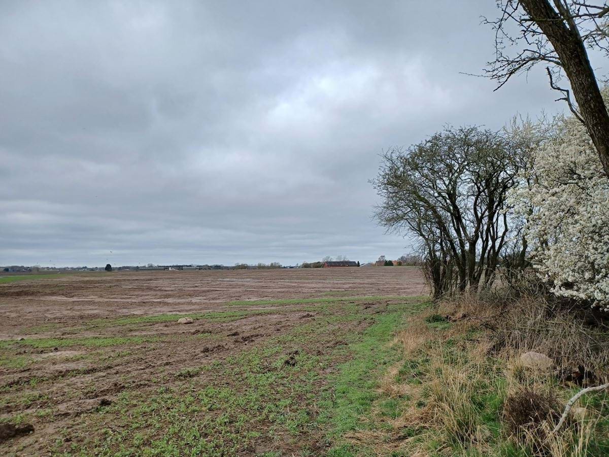 Lokalplanområdet fra forskellige vinkler og et billede af stendiget i øst.