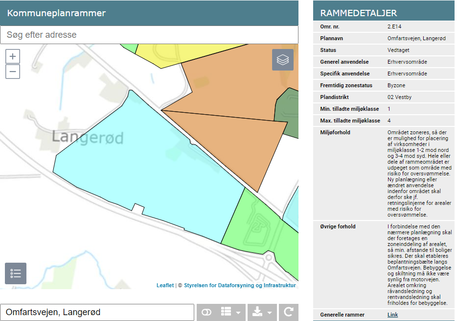 Kort over kommuneplanrammens afgrænsning og rammeindhold fremgår nedenfor.