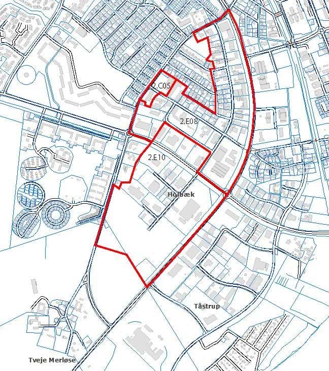 Lokalplanen forudsætter udarbejdelse af et kommuneplantillæg. Lokalplanområdet hører under rammeområderne 2.E08 (nord for Skagerakvej) og 2.E10 (syd for Skagerakvej) i Holbæk Kommuneplan 2007-18, området er beliggende i byzone. Rammeområdernes anvendelse er fastsat til Erhverv. De omkringliggende områder er udlagt til boligområder mod vest, centerområde, erhvervsområde og boligområder mod nord og både boliger og erhvervsområder mod øst. Mod syd er der åbent land.