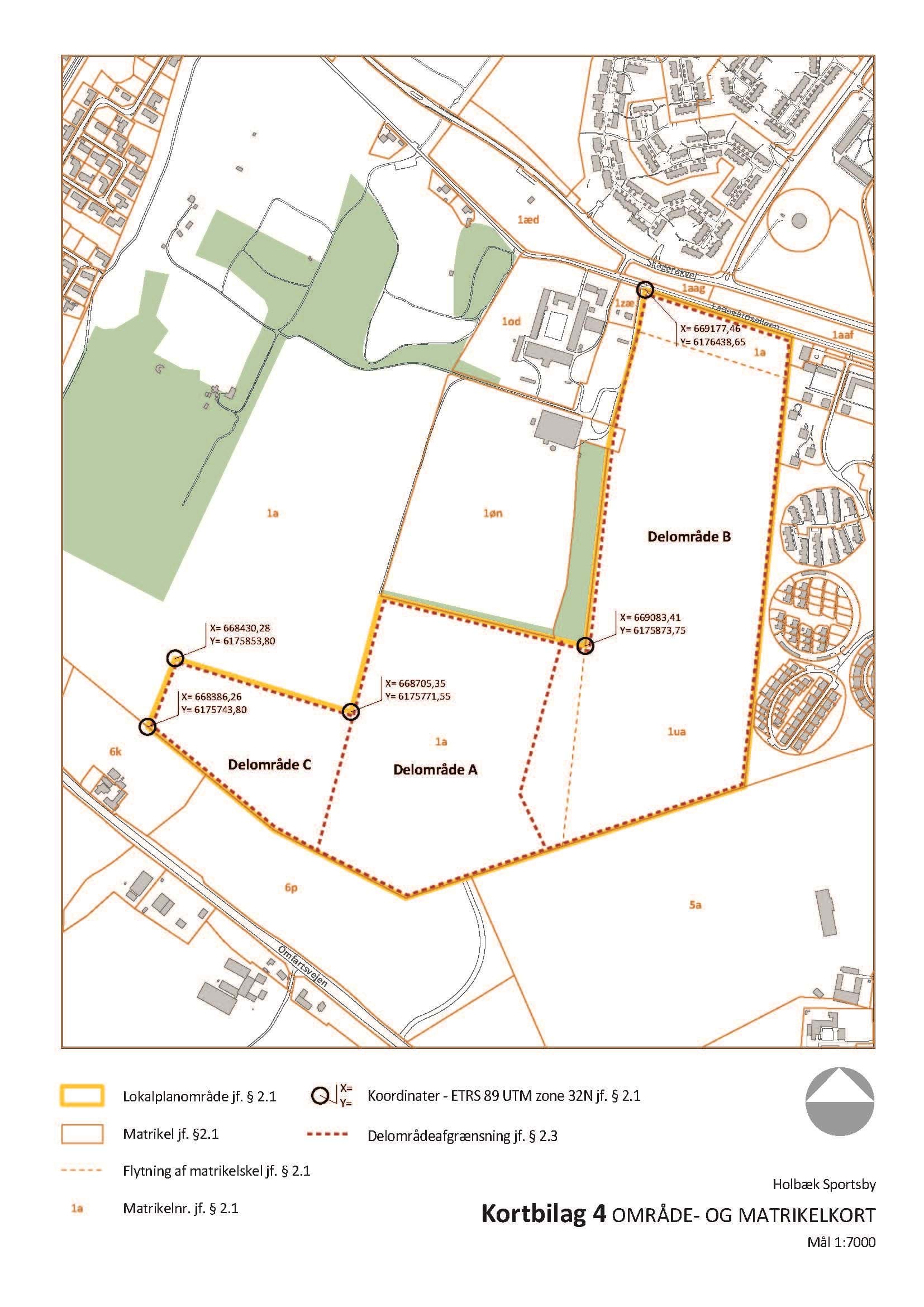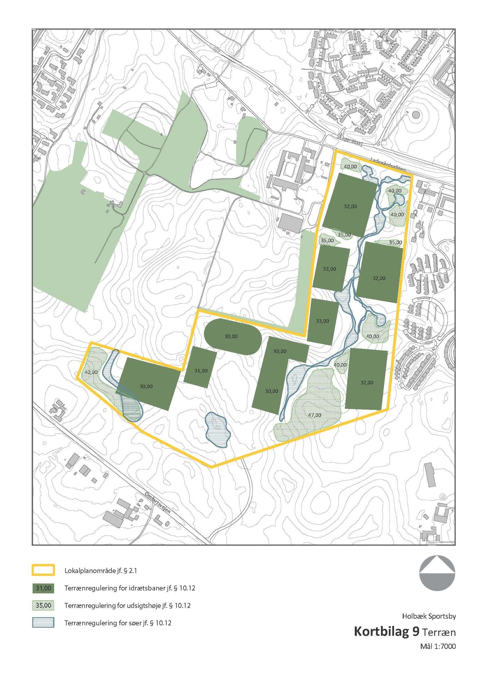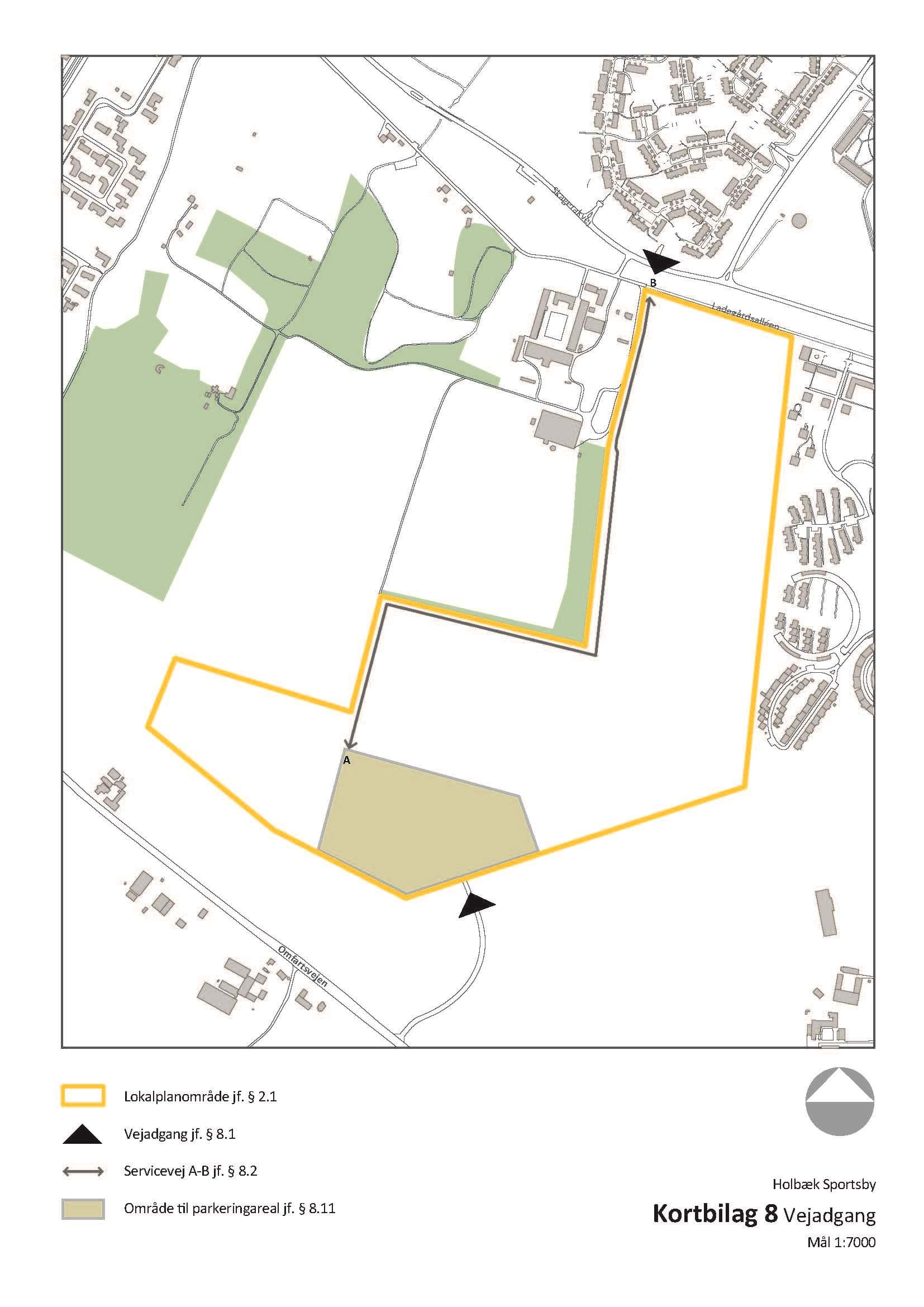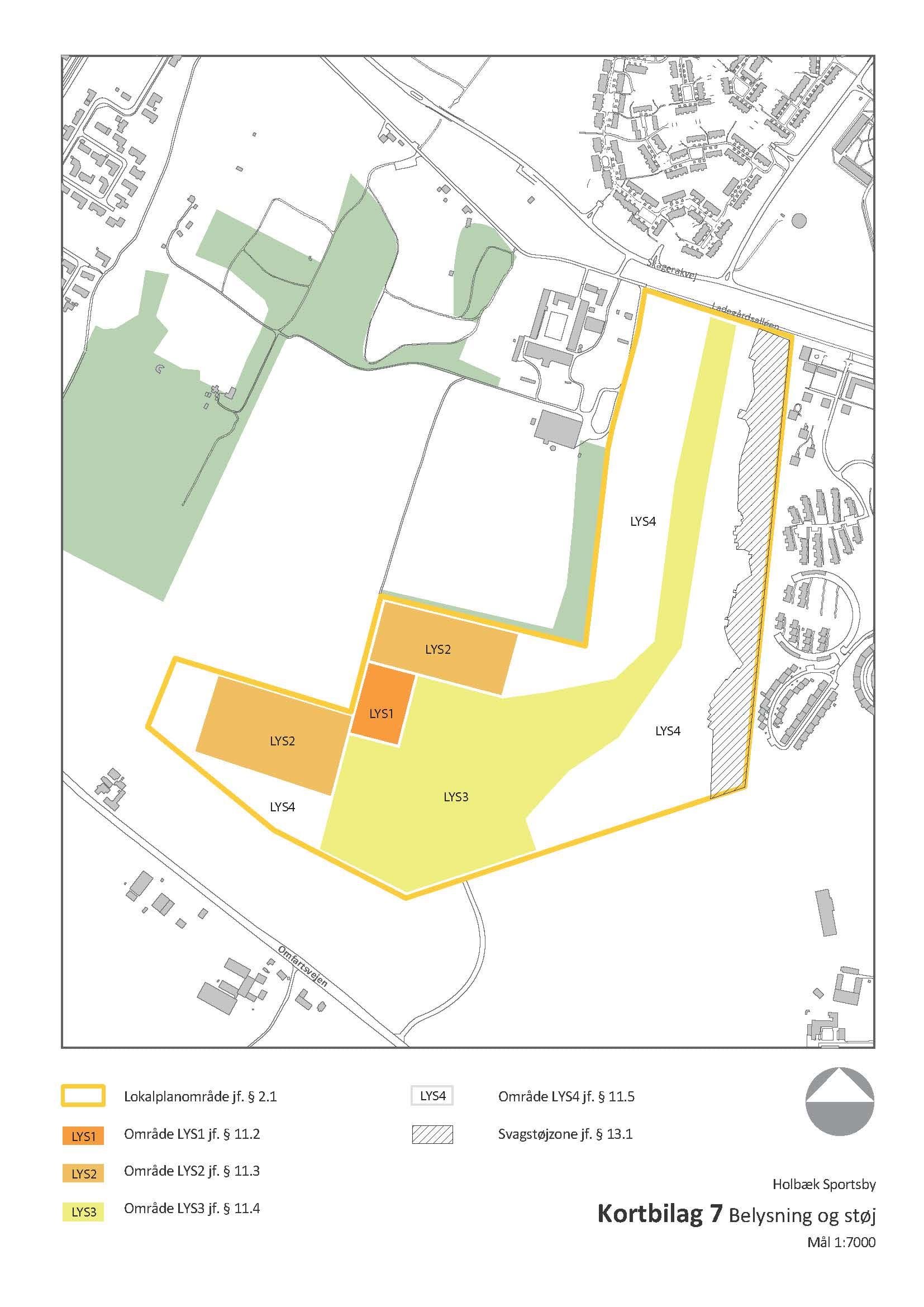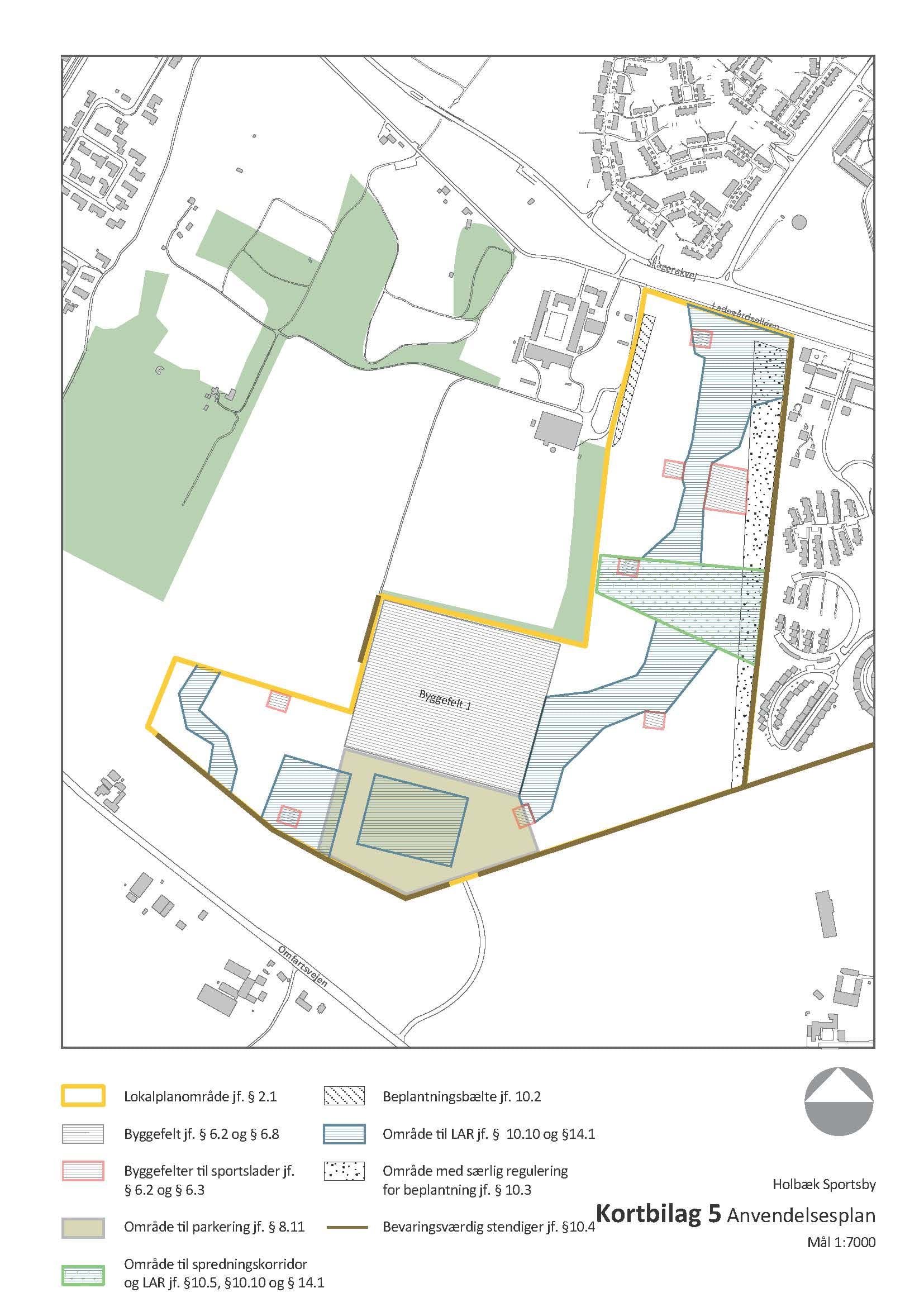 Kortbilagene herunder hører til lokalplanens bestemmelser og er juridisk bindende i forhold til de fremtidige forhold i planområdet.