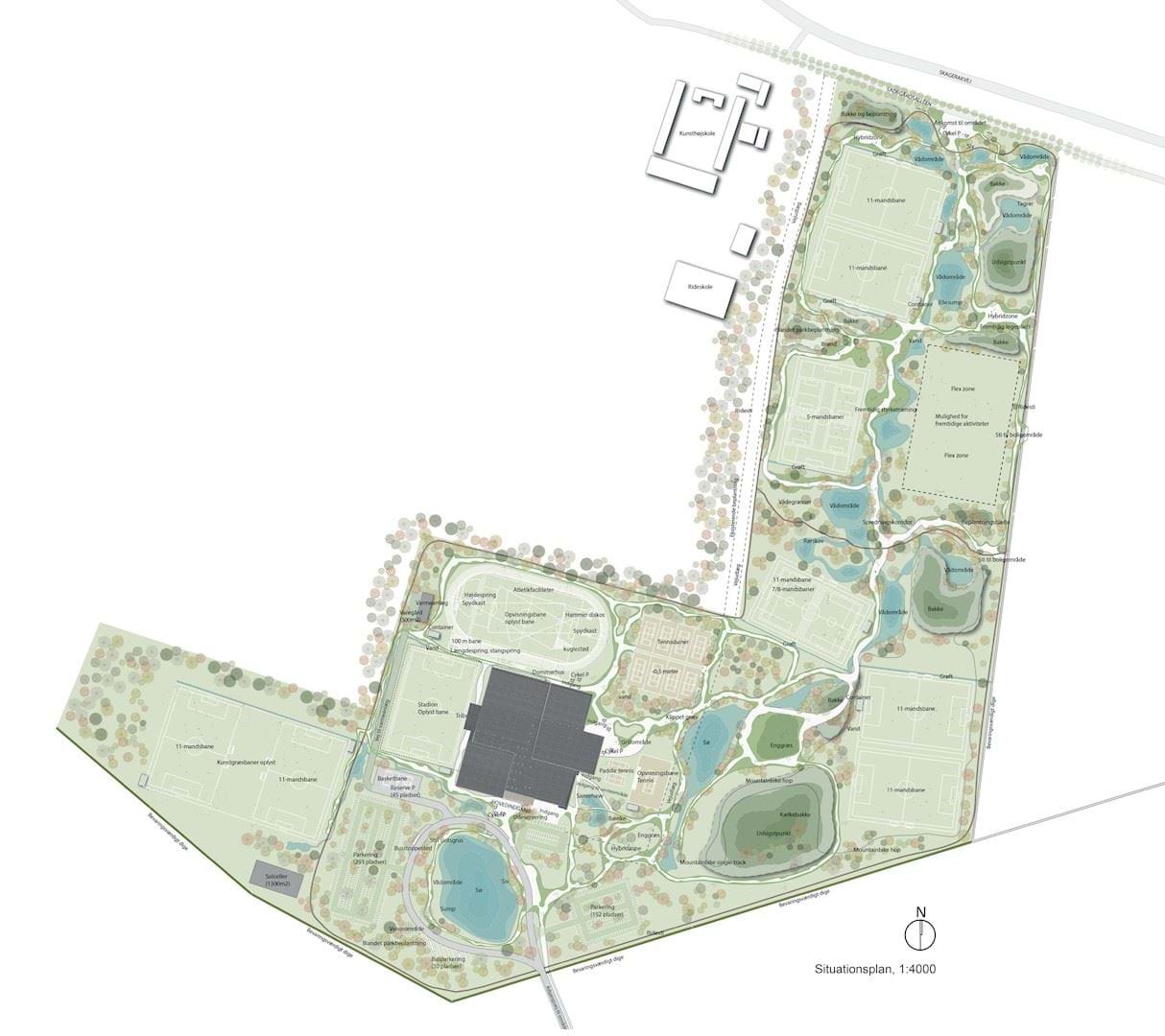 Dertil kommer hybridzoner til ”uorganiseret” idræt, og hvor der vil være plads til småbørnsleg.