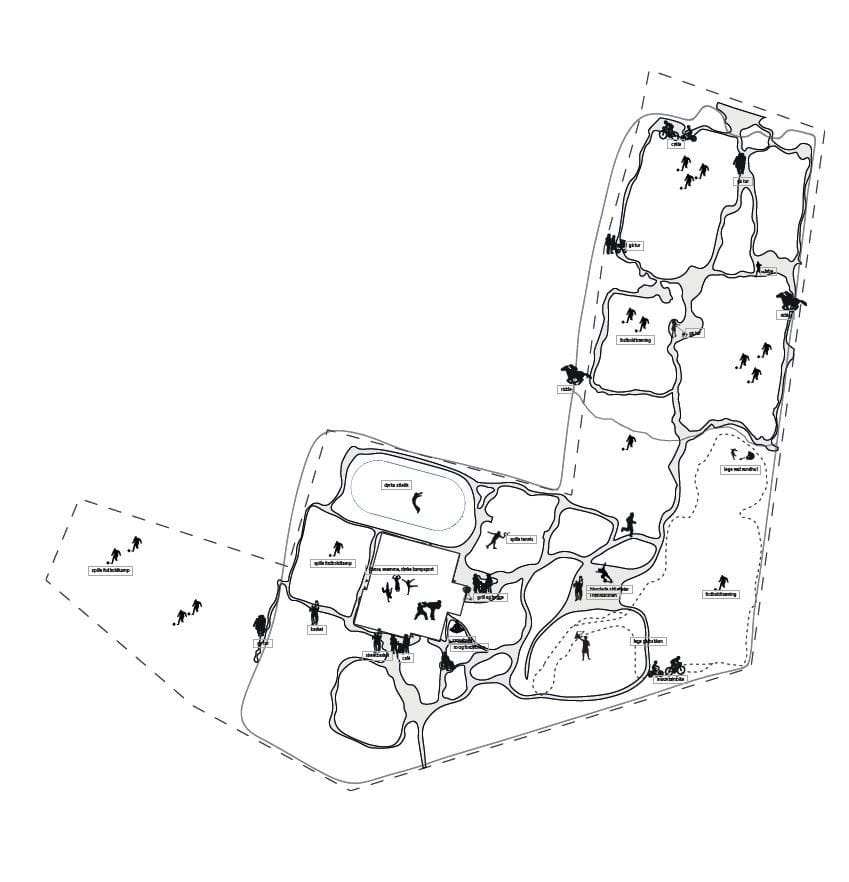 Således forbeholdes idræts- og parkområdet hovedsageligt gående, cyklende og idrætsudøvende.