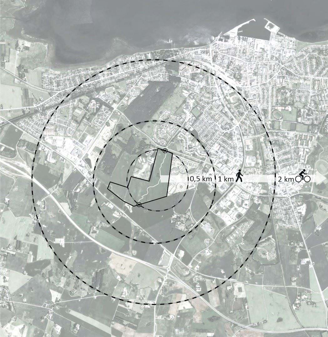 Området er på i alt 42 hektar, og mod vest grænser det op til et 60 hektar stort rekreativt naturområde med skov og aktiviteter såsom naturskole, dyrehave, klatrepark, mountainbikebaner m.v.