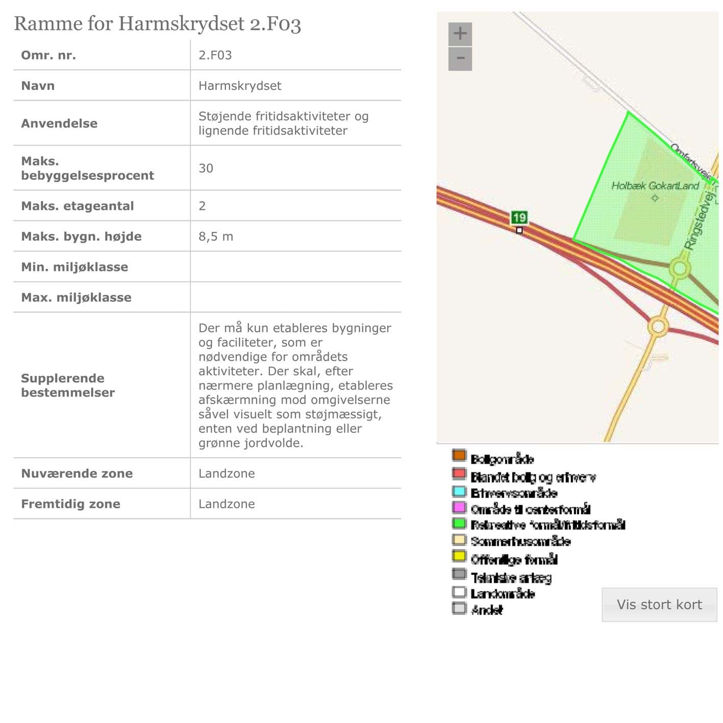 Lokalplanen er i overensstemmelse med eksisterende kommuneplanramme 2.F03 i Kommuneplan 2013, der udlægger arealet til støjende fritidsaktiviteter og lignende fritidsaktiviteter.