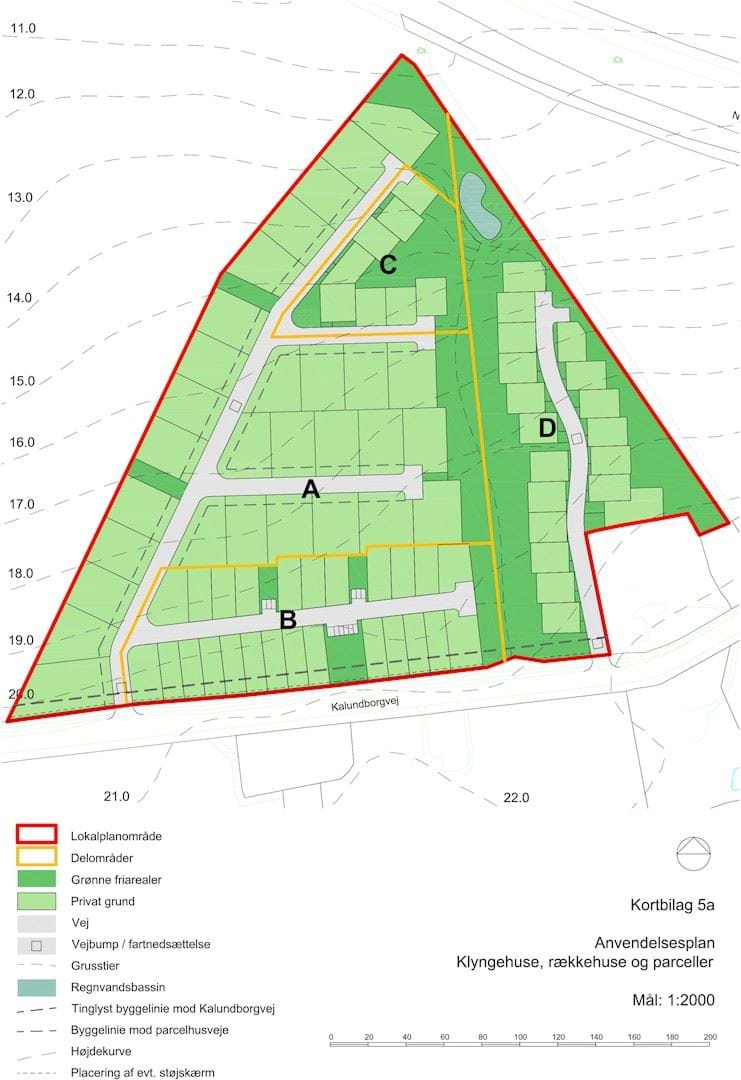 Kortbilagene herunder hører til lokalplanens bestemmelser og er juridisk bindende i forhold til de fremtidige forhold i planområdet.