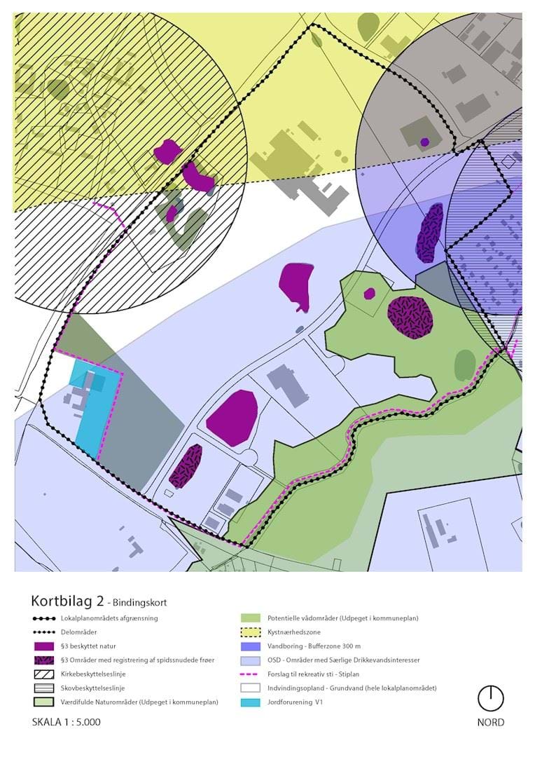 Kortbilagene herunder hører til lokalplanens bestemmelser og er juridisk bindende i forhold til de fremtidige forhold i planområdet.