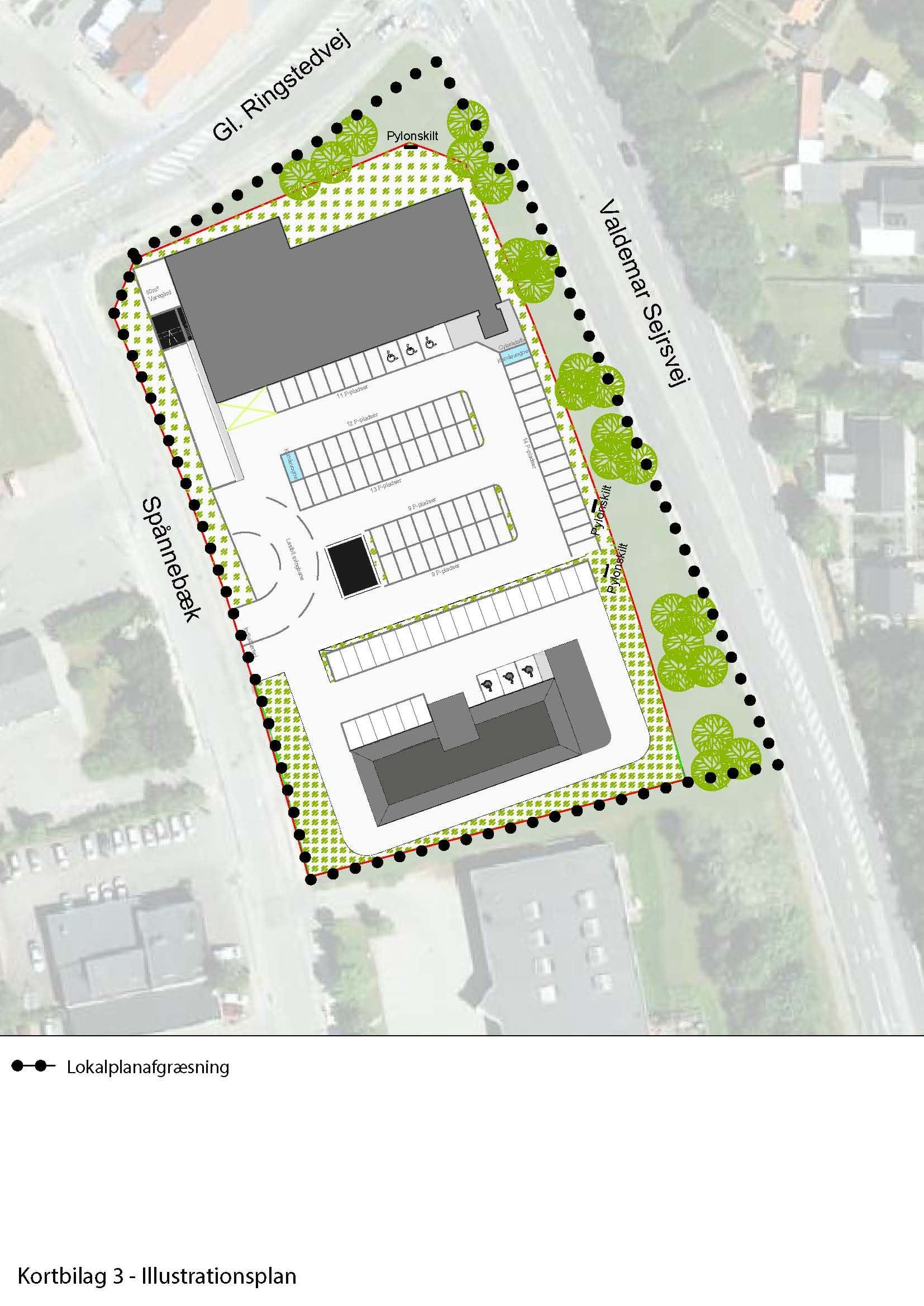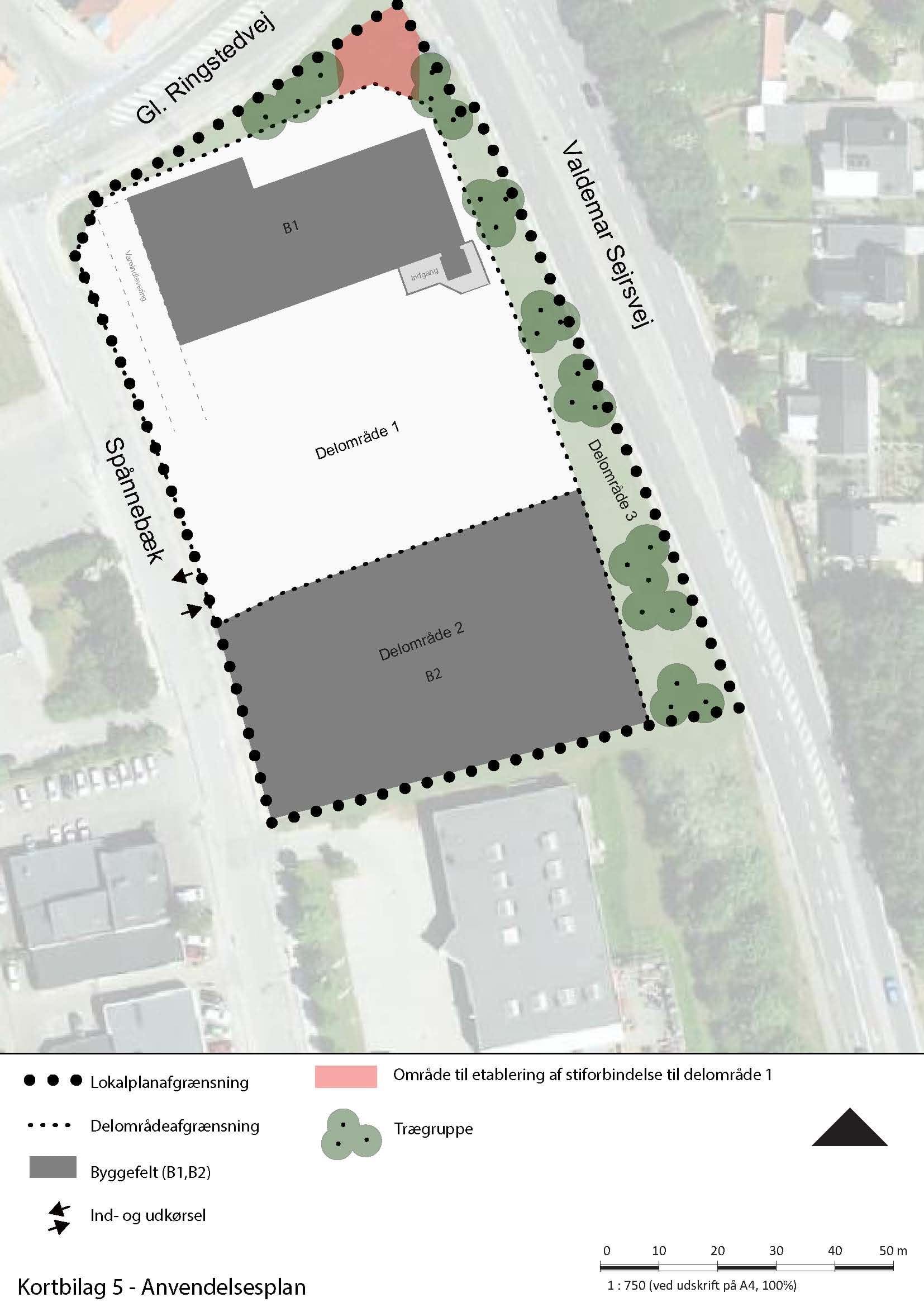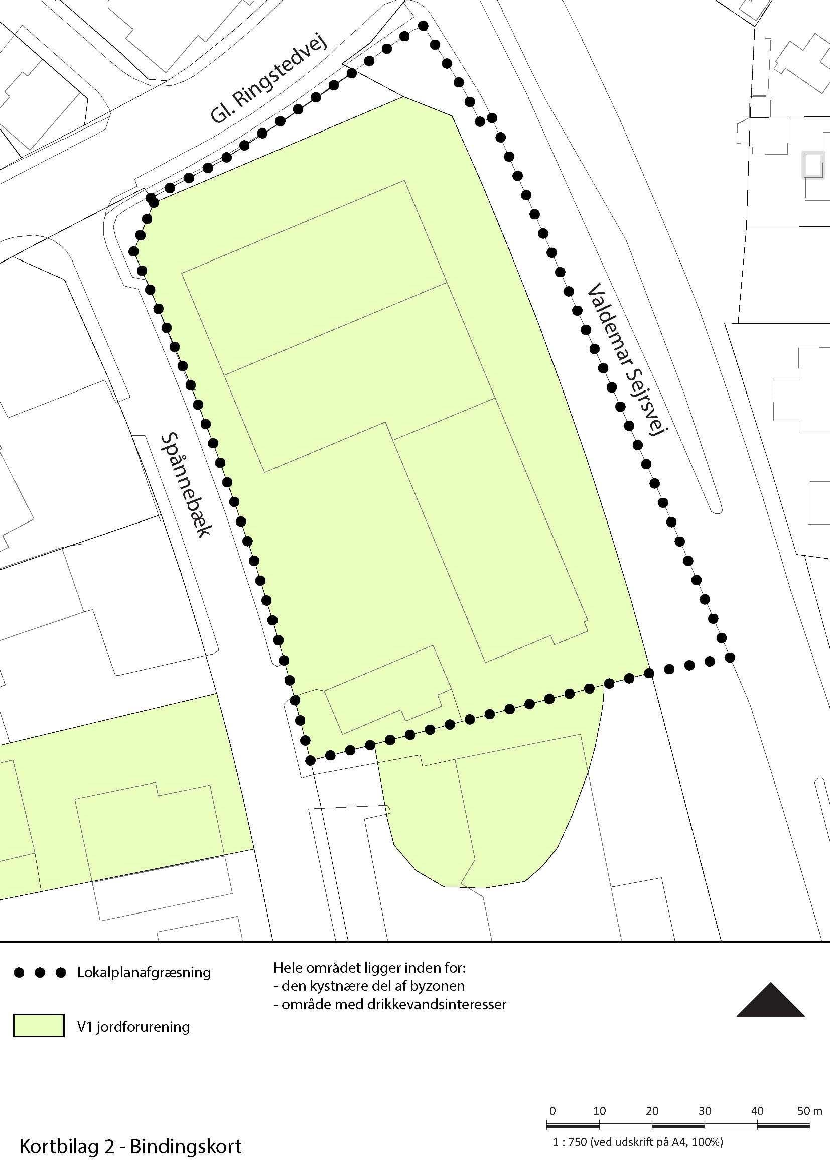 Kortbilagene herunder hører til lokalplanens bestemmelser og er juridisk bindende i forhold til de fremtidige forhold i planområdet.