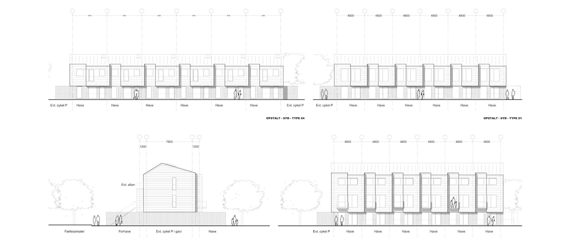 Principiel opstalt: tæt-lav bebyggelse på 2 etager og etagebebyggelsen på 3 etagers.
