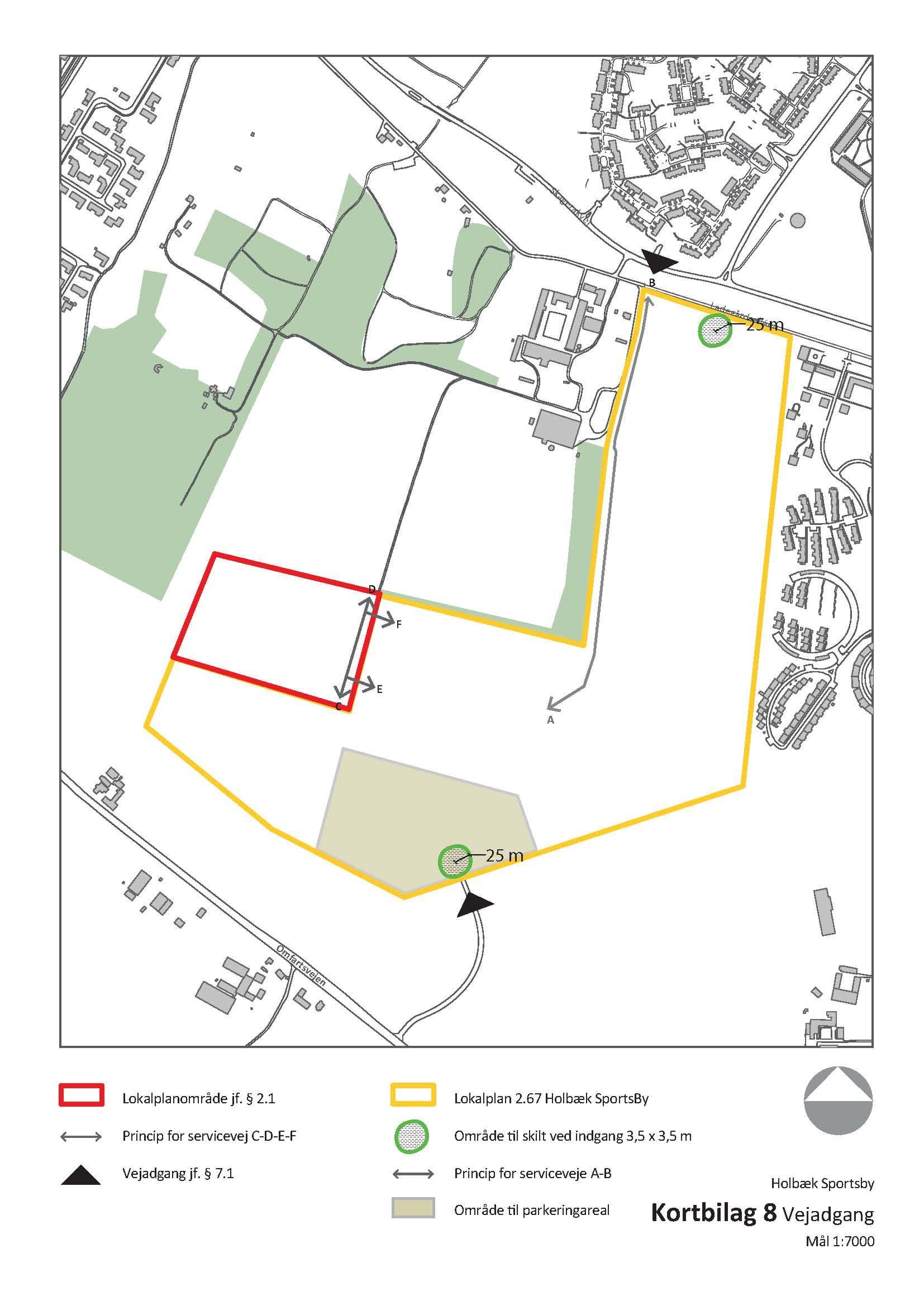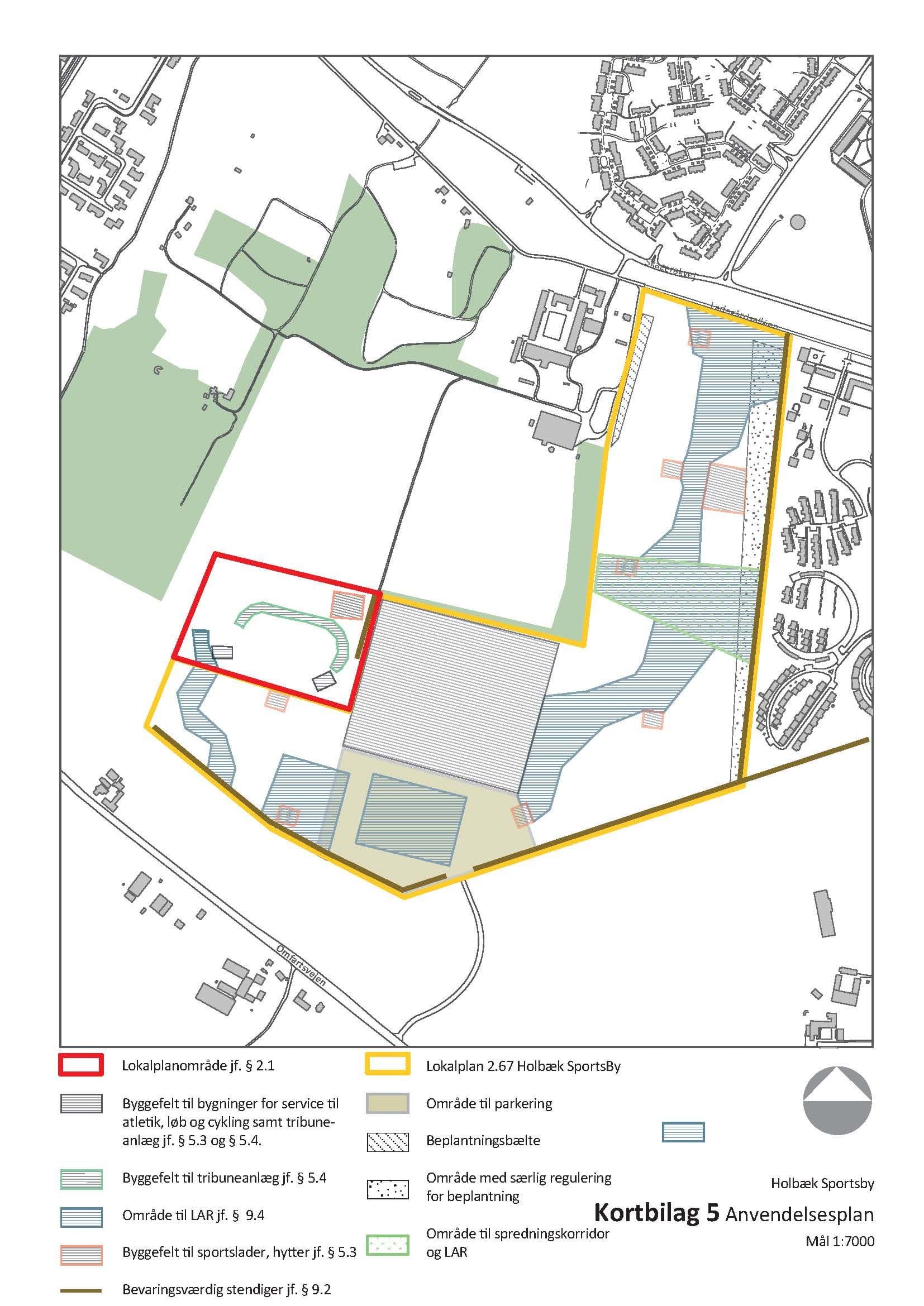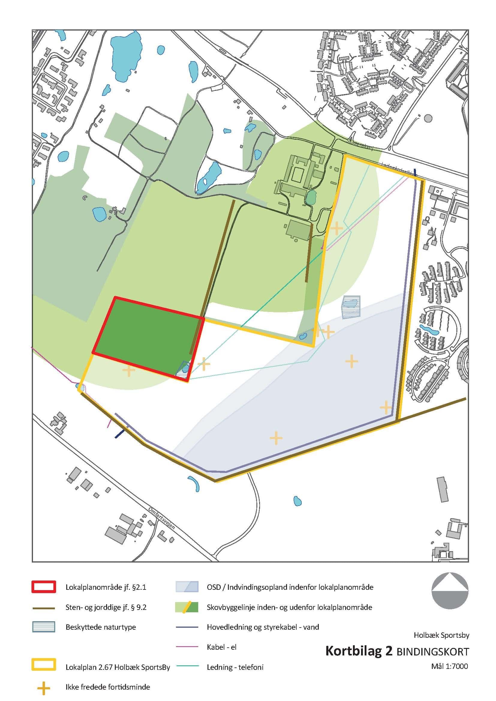 Kortbilagene herunder hører til lokalplanens bestemmelser og er juridisk bindende i forhold til de fremtidige forhold i planområdet.