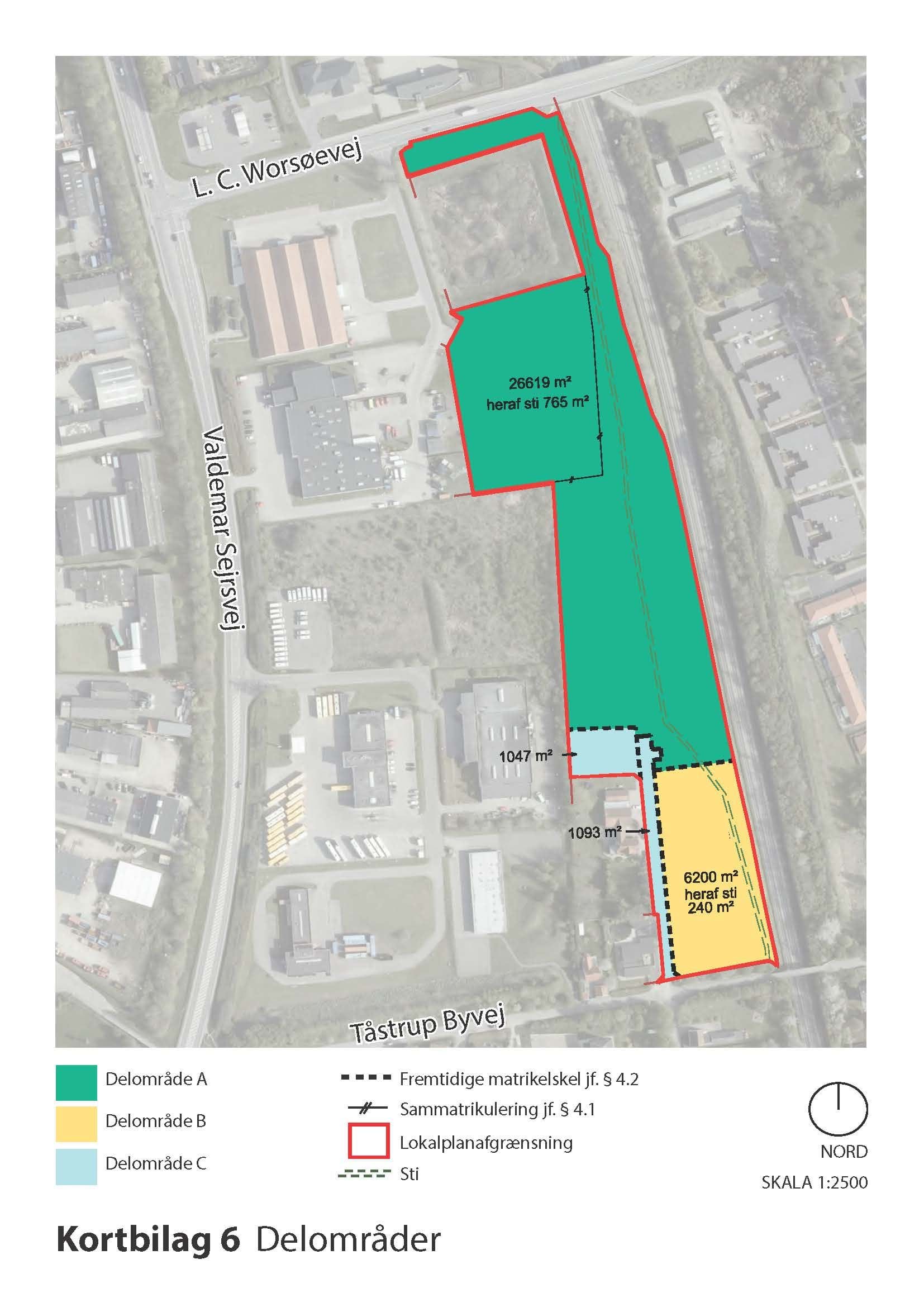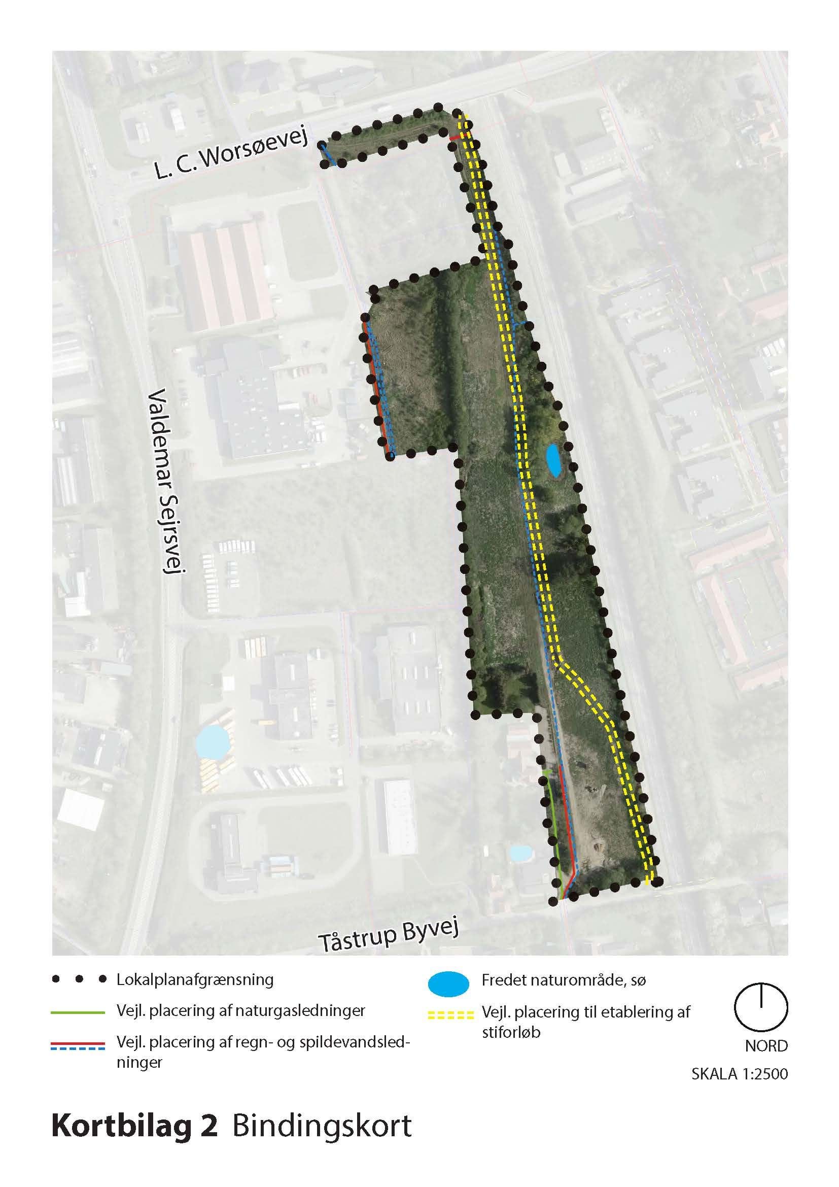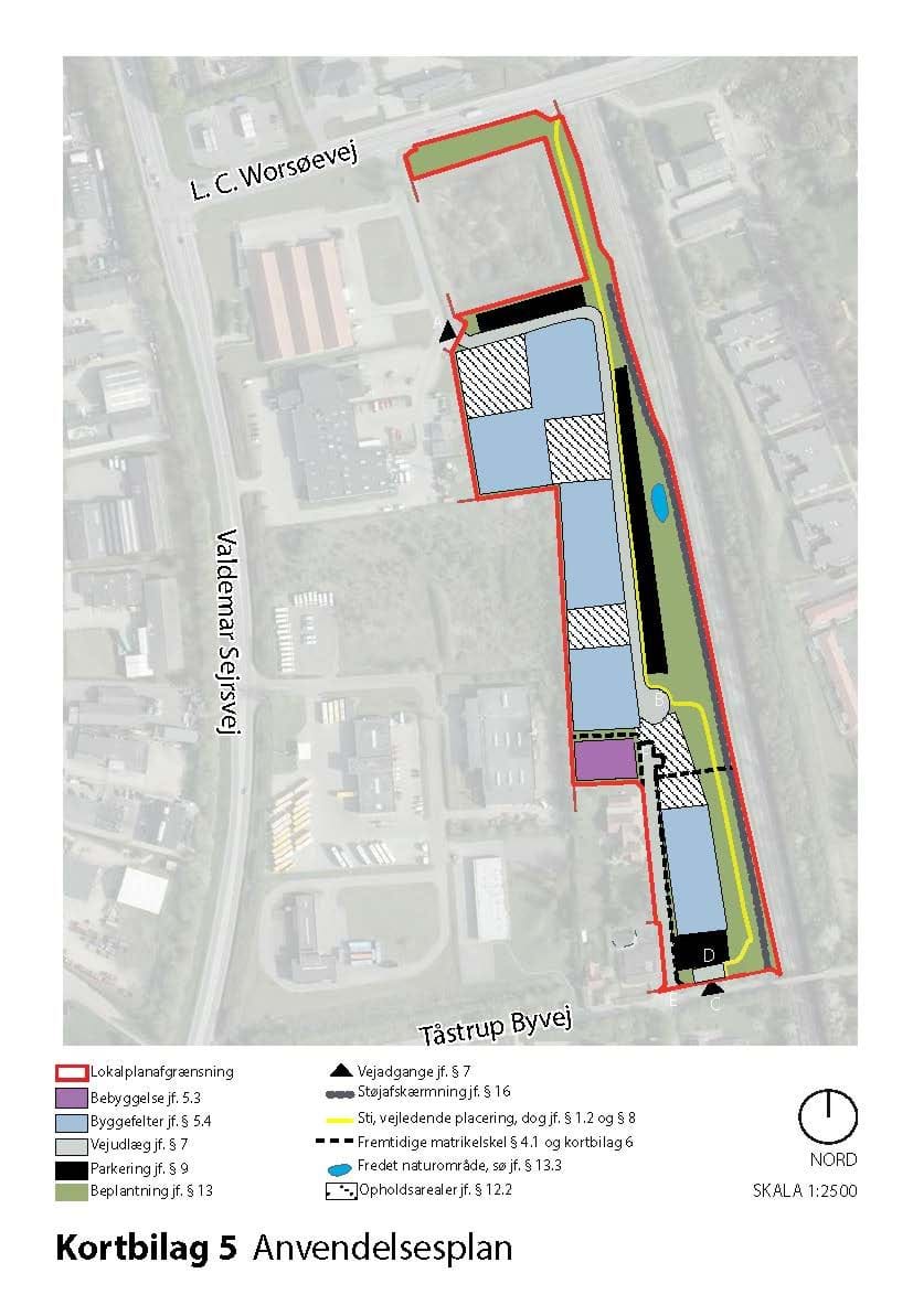 Kortbilagene herunder, kortbilag 5 og 6, hører til lokalplanens bestemmelser og er juridisk bindende i forhold til de fremtidige forhold i planområdet.