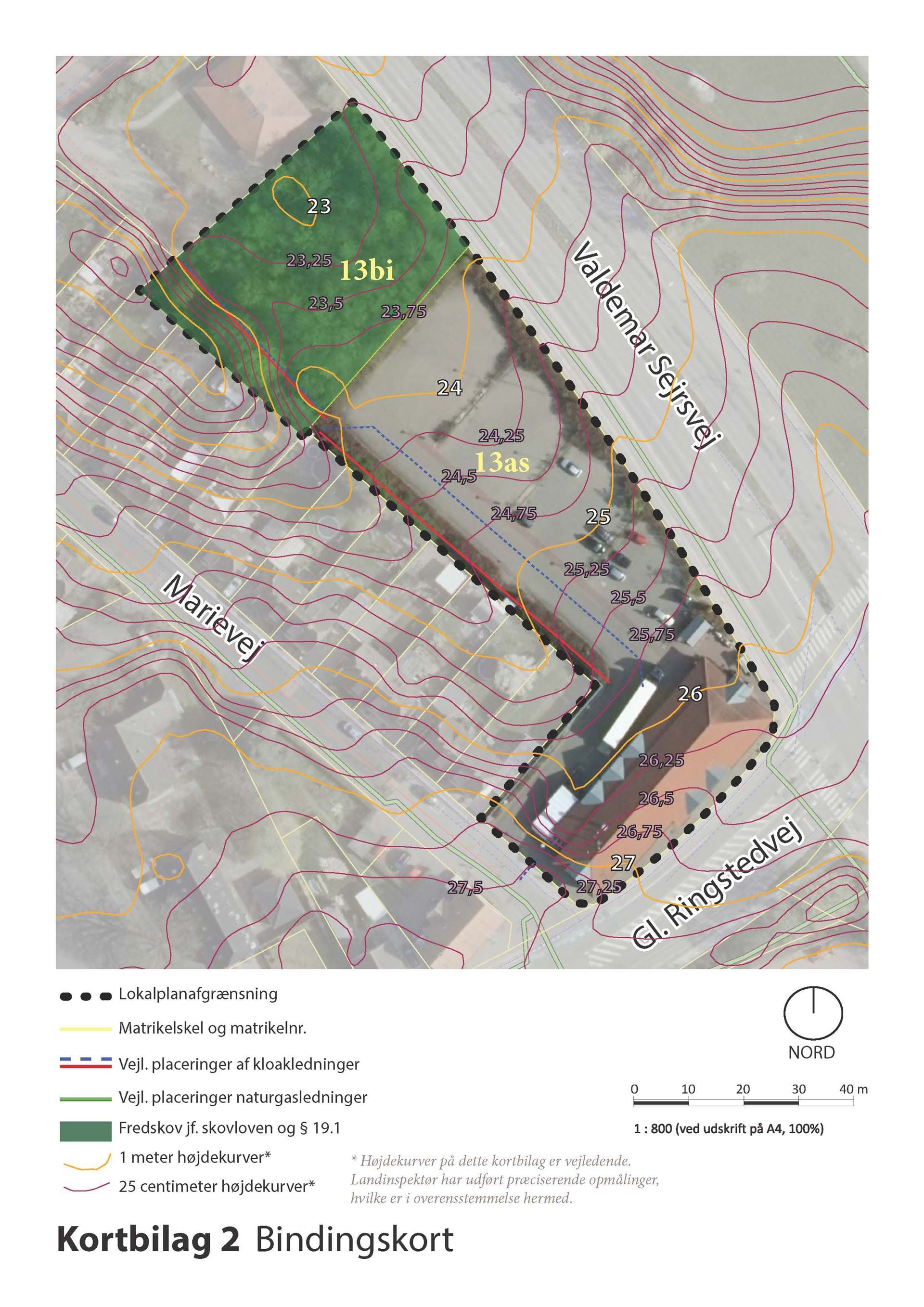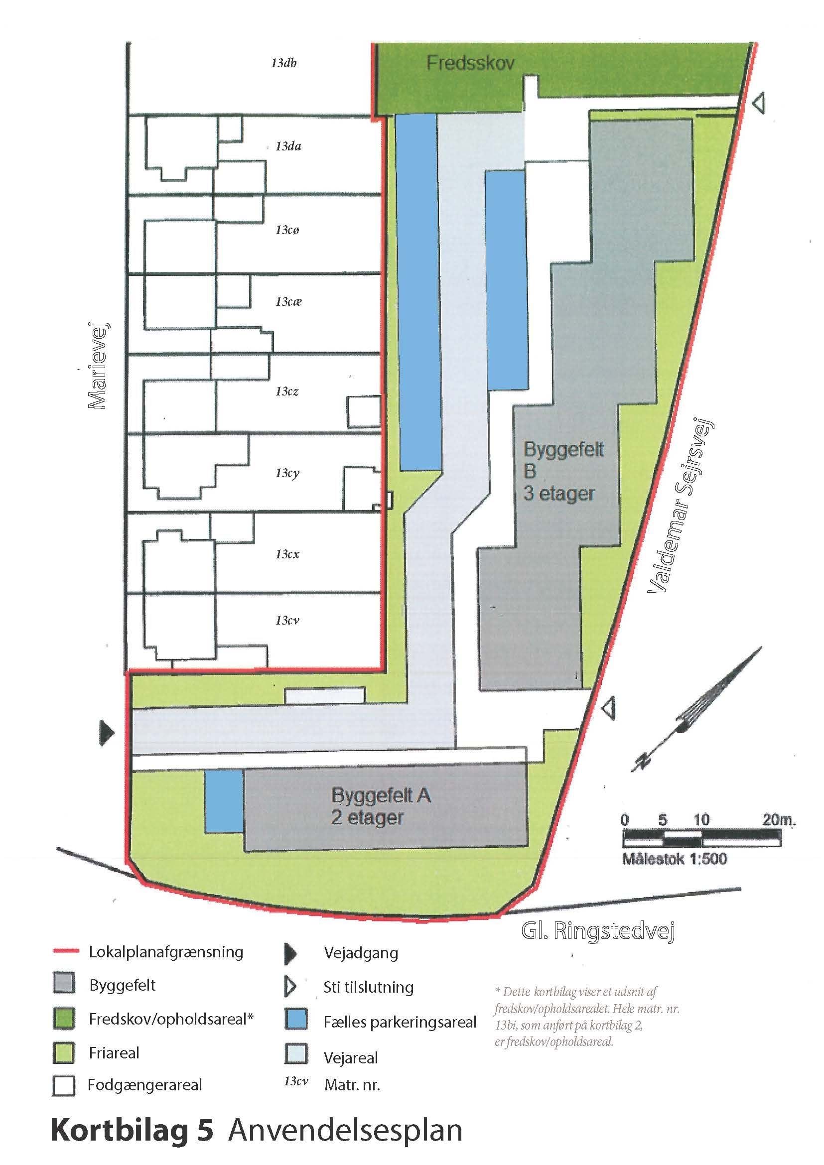 Kortbilaget herunder hører til lokalplanens bestemmelser og er juridisk bindende i forhold til de fremtidige forhold i planområdet.