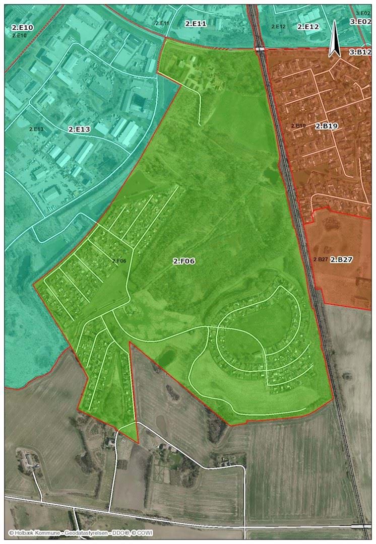 Lokalplanen ligger indenfor kommuneplanramme nr. 2.F06. Området er udlagt til rekreativt formål (kolonihaver og skov) og forsyningsformål. I Kommuneplanen 2017 er der øst for jernbaneterrænet udlagt en mulighed for fremtidig anvendelse til boligformål.
