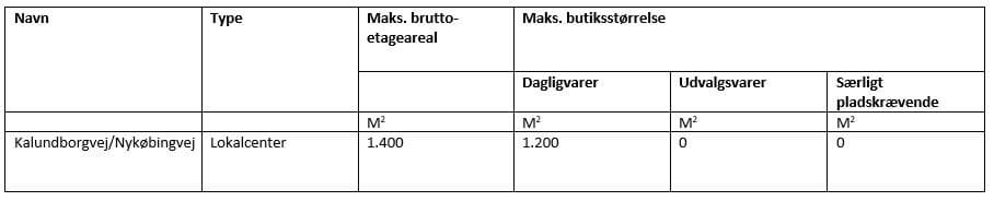 Kommuneplanens retningslinje 2.2.4 for lokalcenter Kalundborgvej/Nykøbingvej ændres, som angivet i skemaet