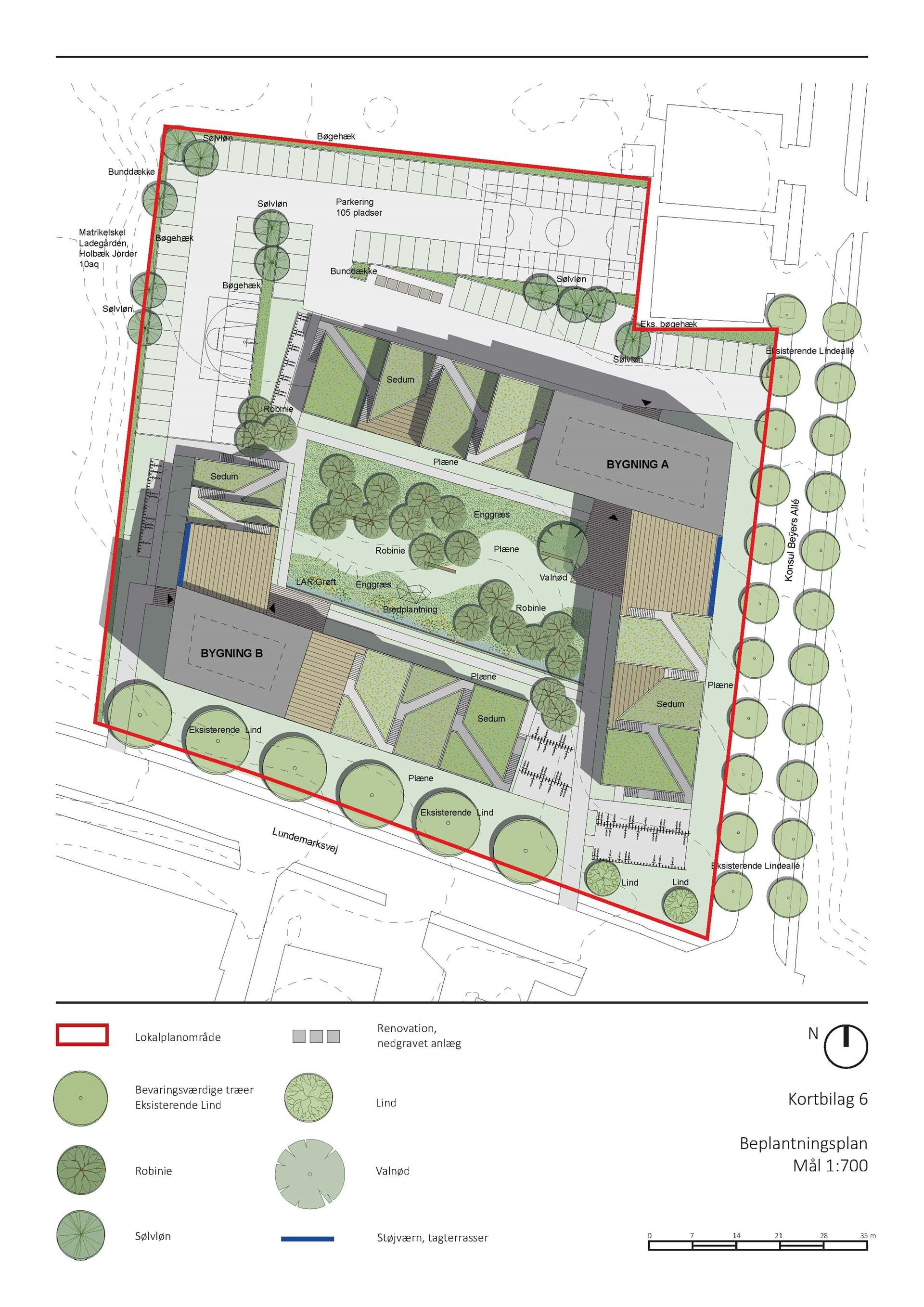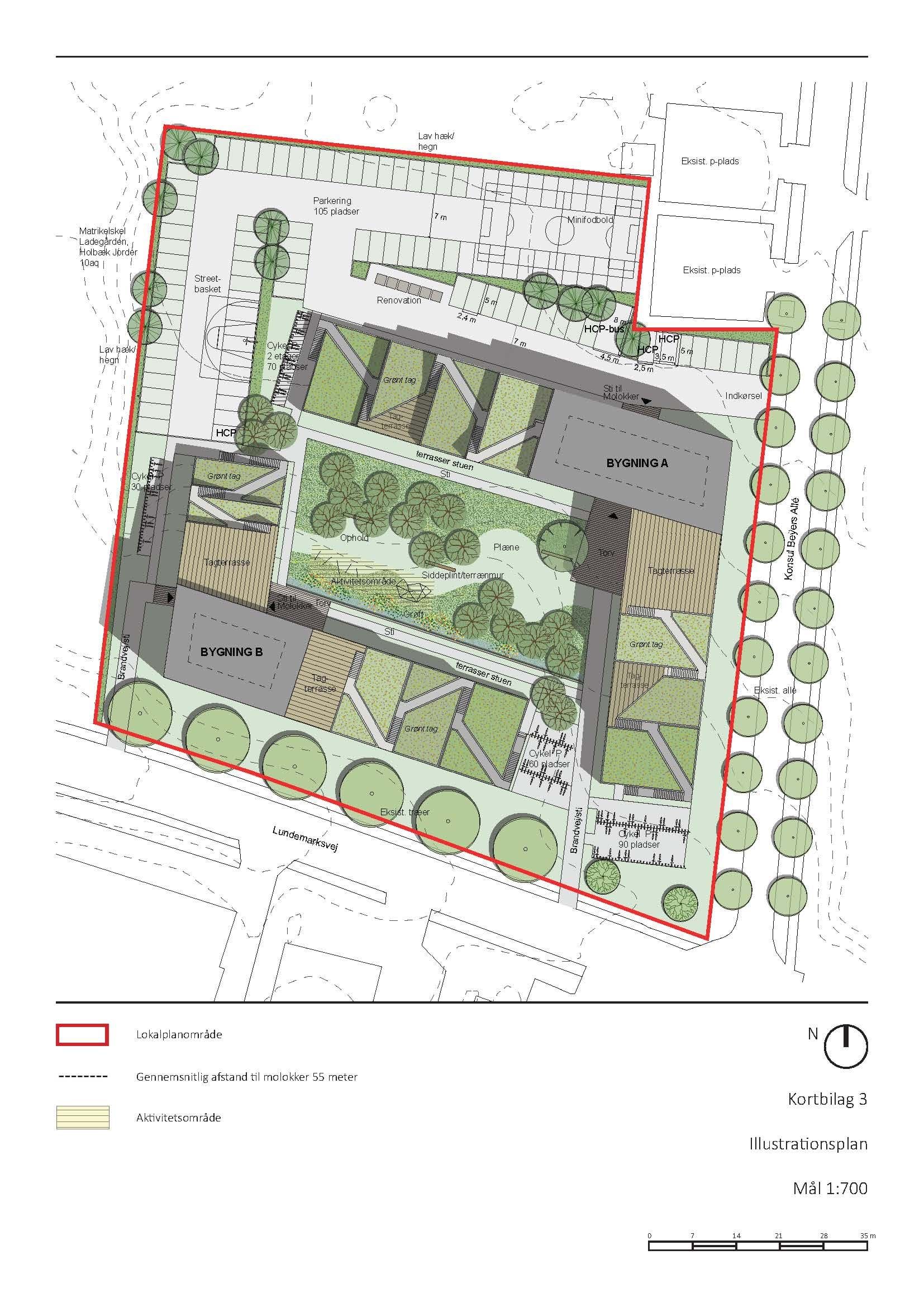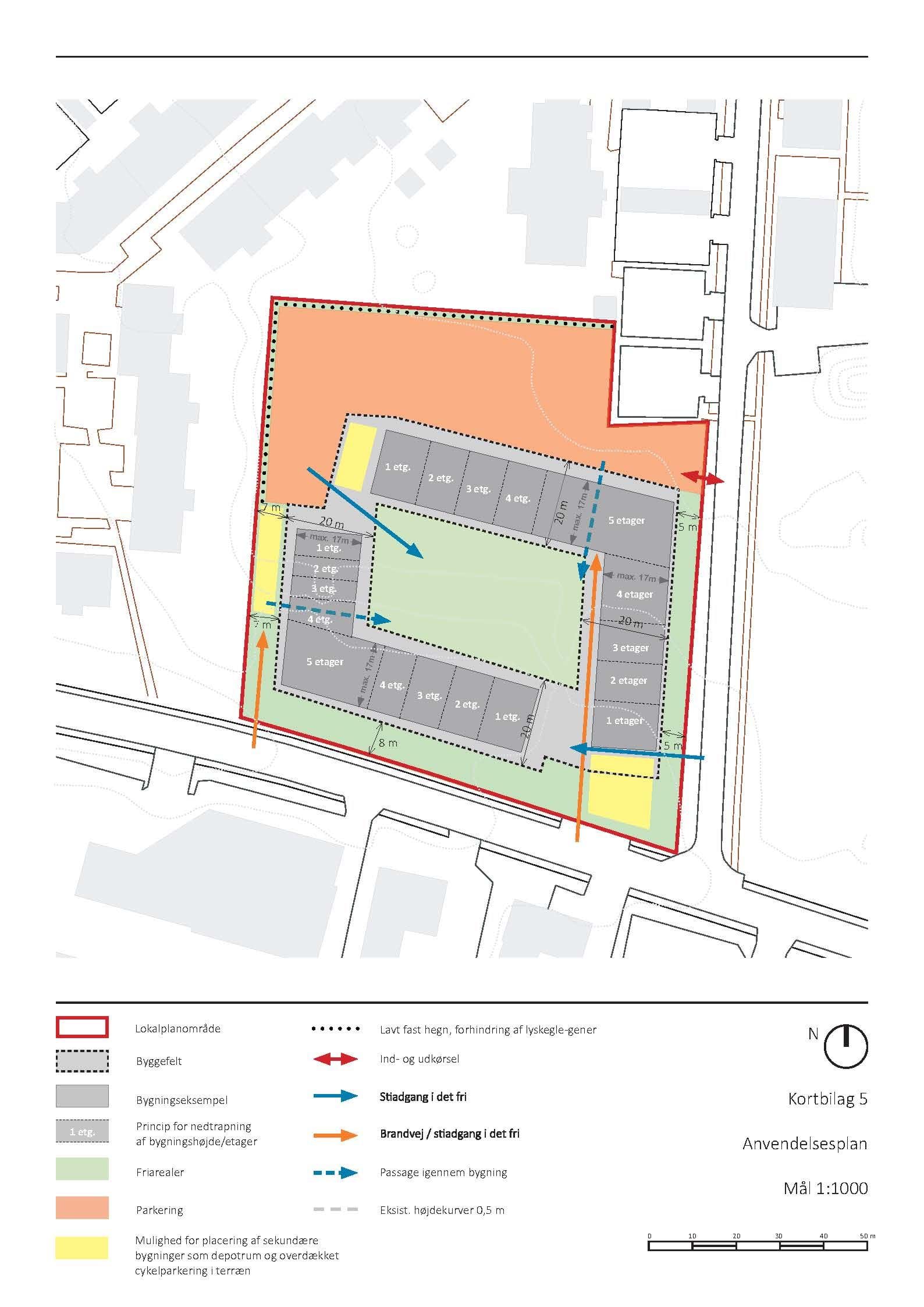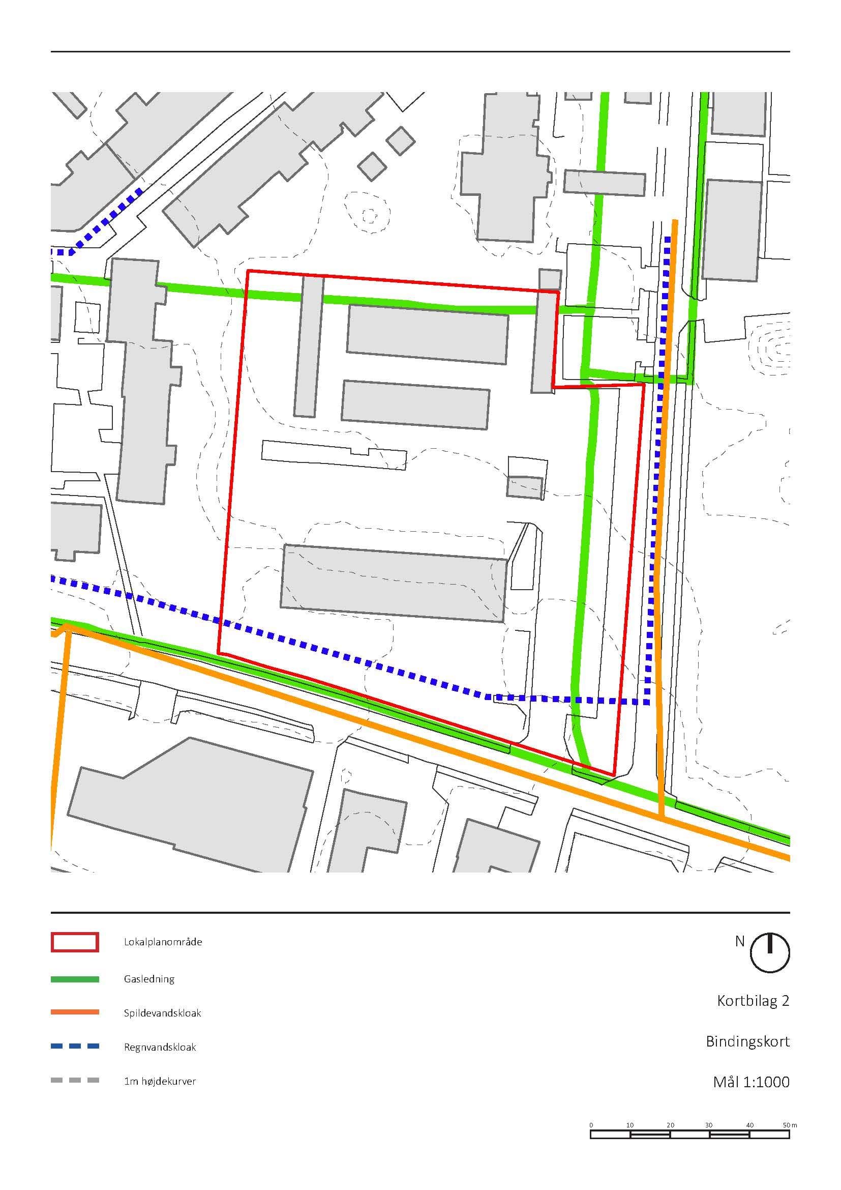 Kortbilagene herunder hører til lokalplanens bestemmelser og er juridisk bindende i forhold til de fremtidige forhold i planområdet.