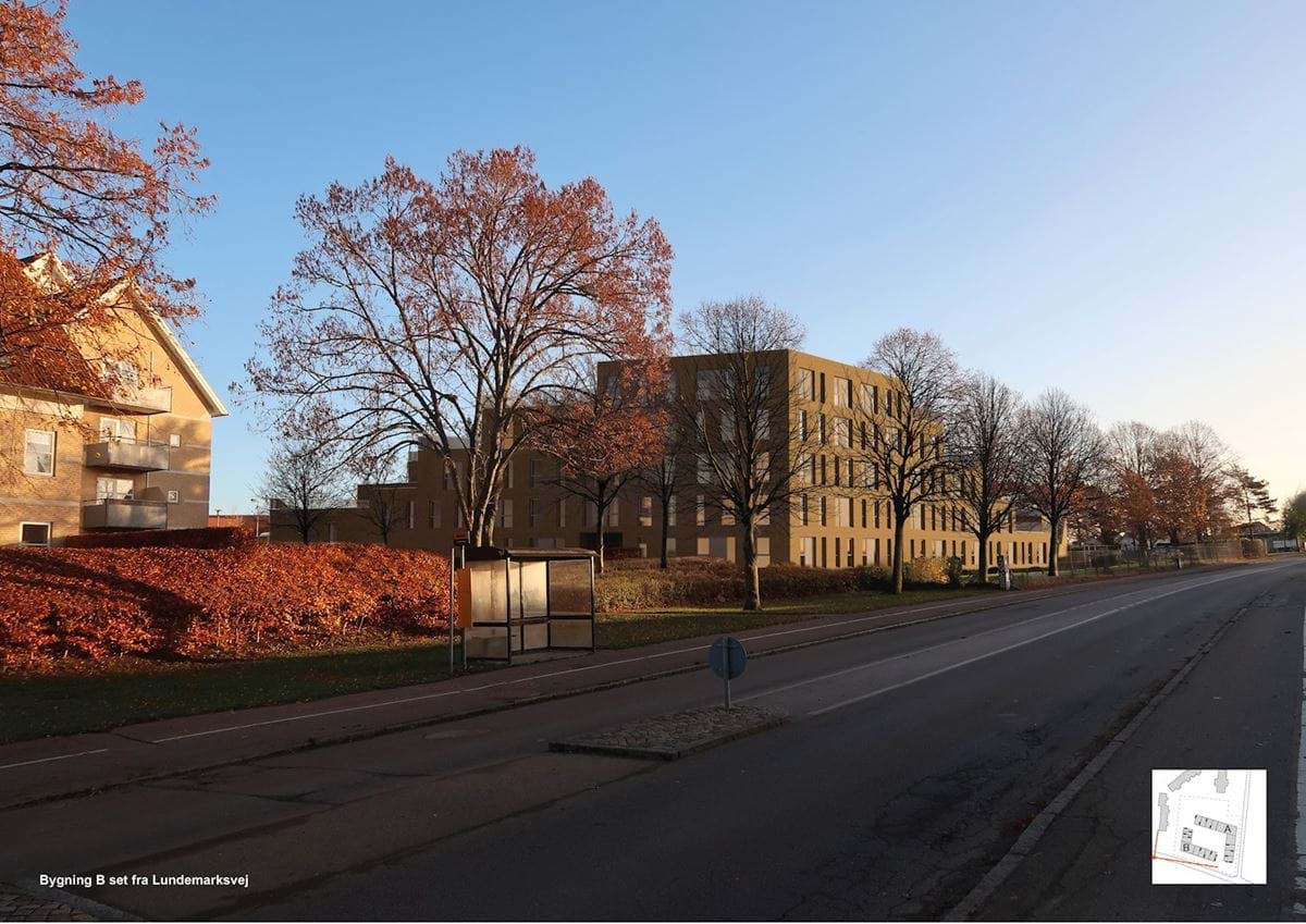 Illustration 9: Visualisering af bebyggelsen set fra Lundemarksvej mod vest