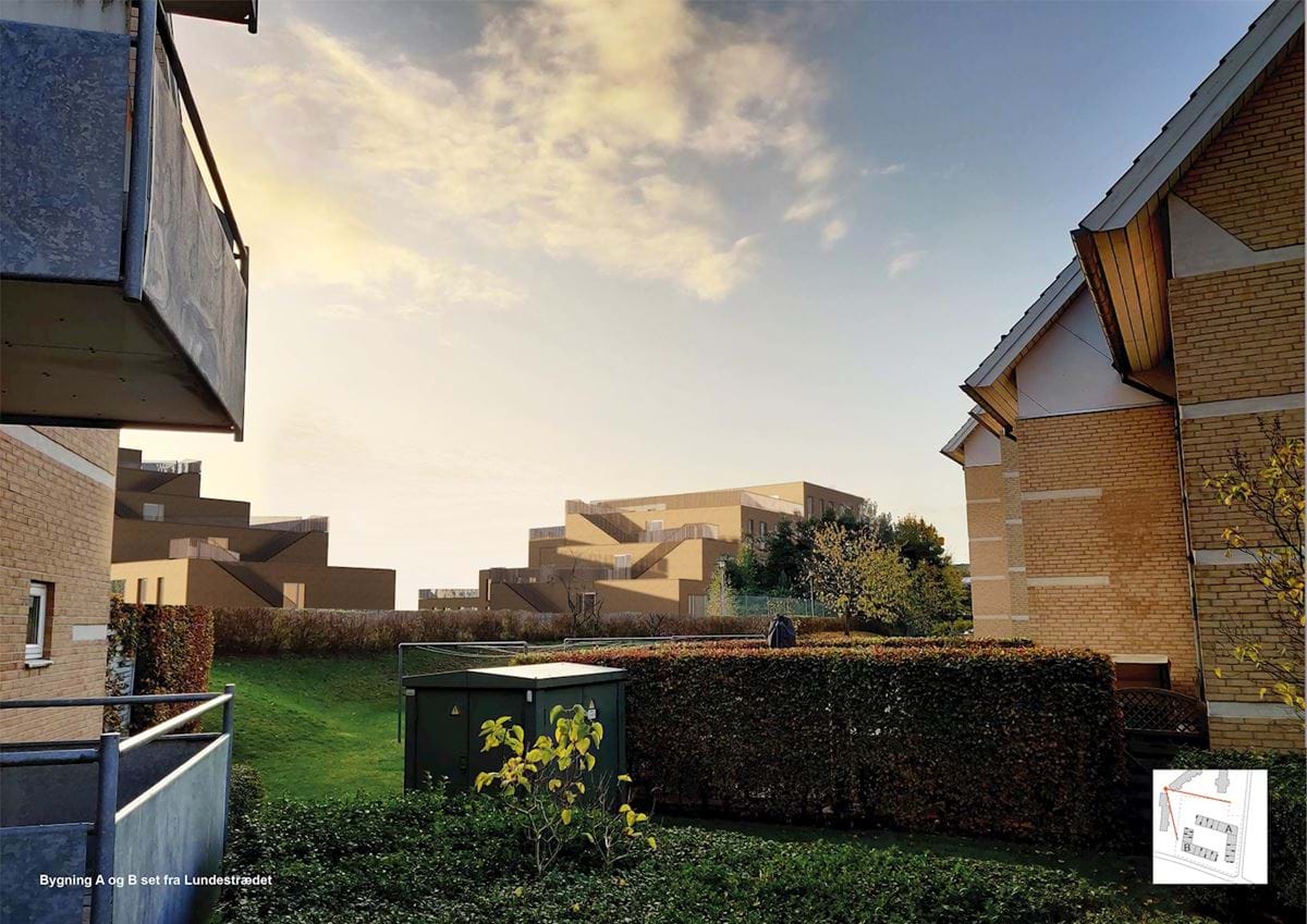 - Mod vest ligger bebyggelsen Lundemarken i 2,5 – 8 etager
