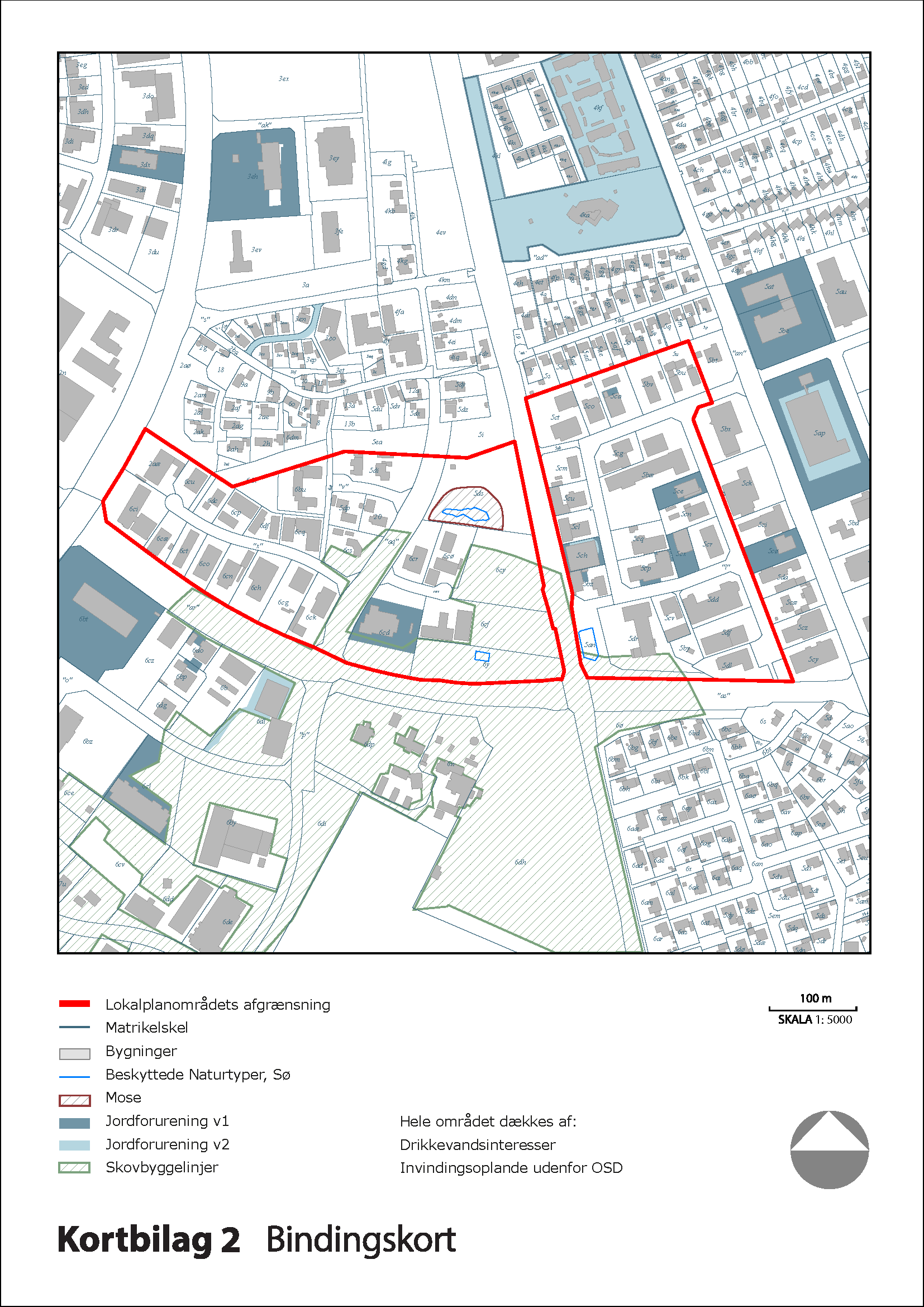 Kortbilagene herunder hører til lokalplanens bestemmelser og er juridisk bindende i forhold til de fremtidige forhold i planområdet.