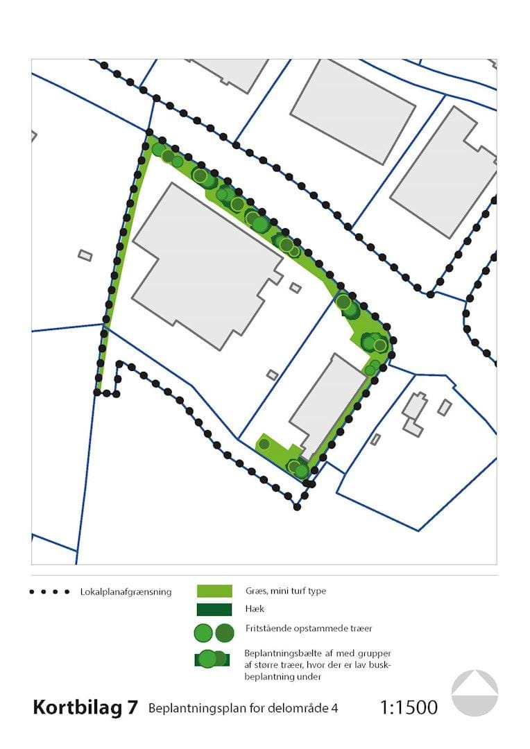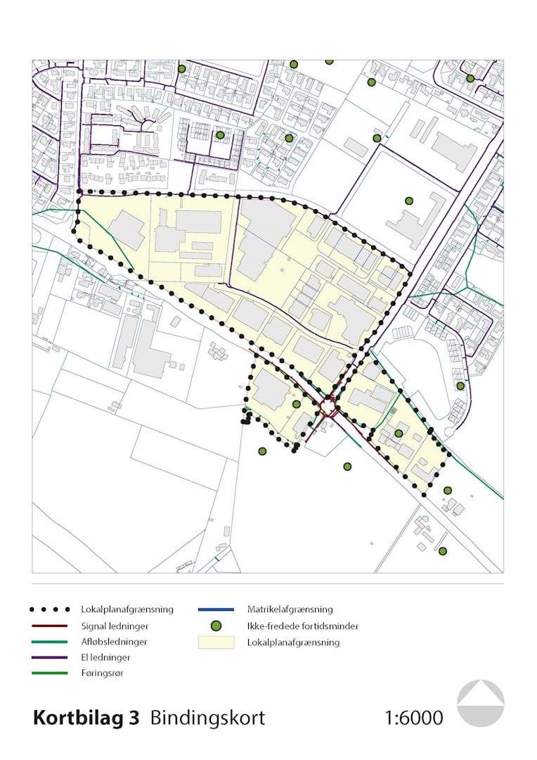 Kortbilagene herunder hører til lokalplanens bestemmelser og er juridisk bindende i forhold til de fremtidige forhold i planområdet.
