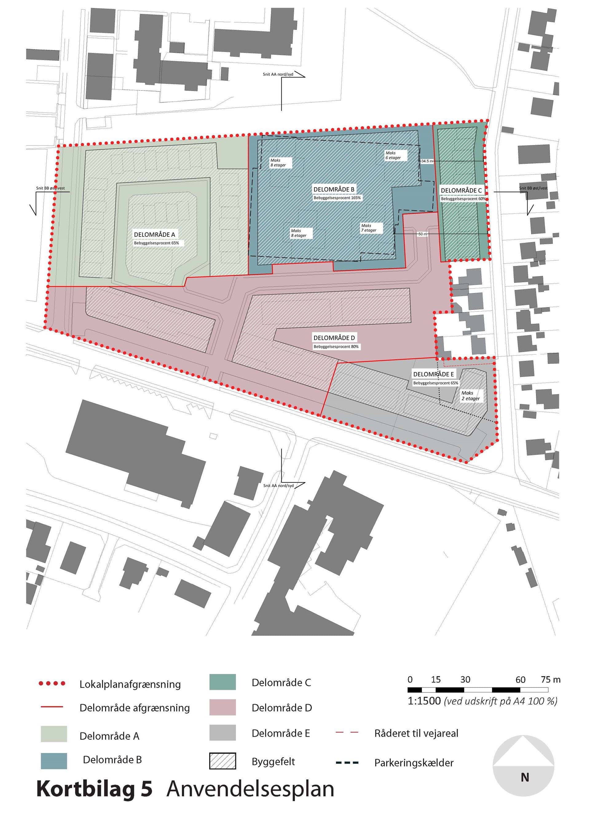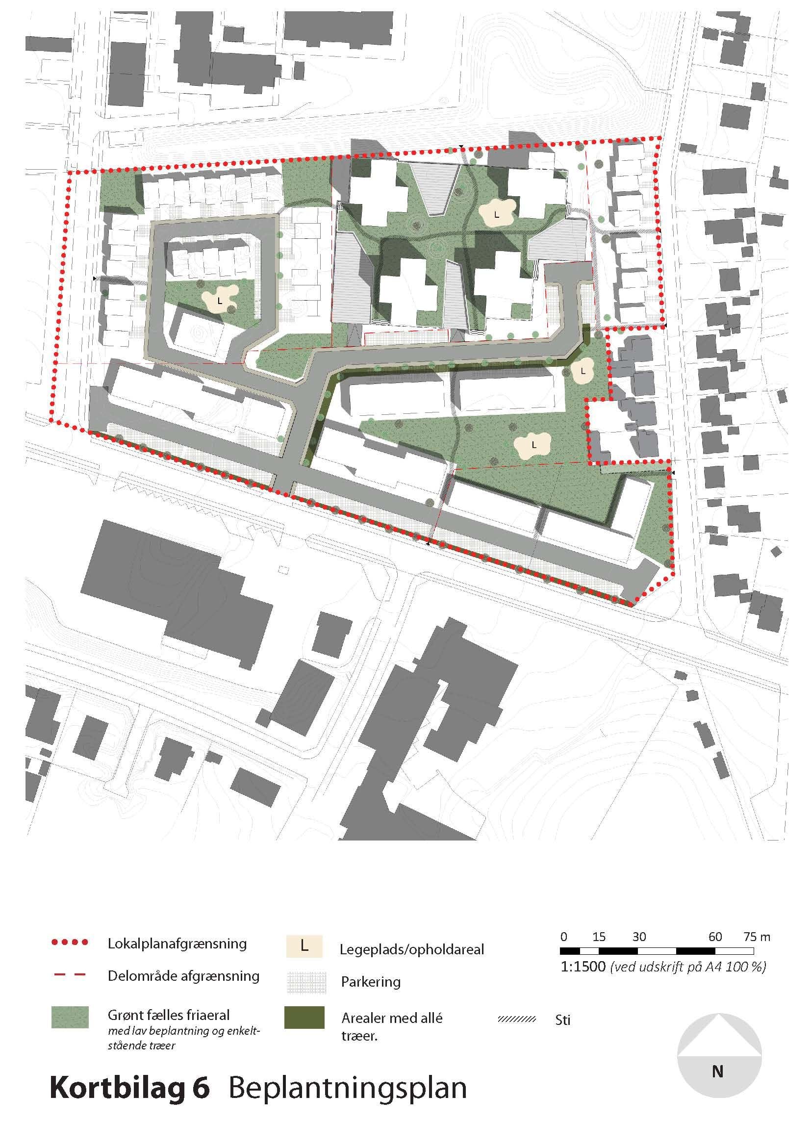 Kortbilagene herunder hører til lokalplanens bestemmelser og er juridisk bindende i forhold til de fremtidige forhold i planområdet.