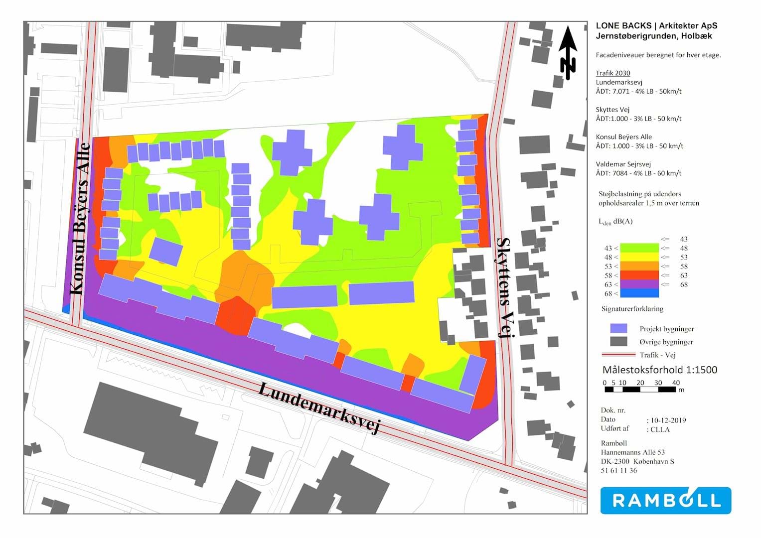 I forbindelse med realisering af projektet vil man skulle tage de nødvendige forholdsregler med anvendelse af støjreducerende tiltag som f.eks. støjreducerende vinduer i facaden ud mod hhv. Lundemarksvej, Konsul Beÿers Alle og Skyttens vej. Udformningen af boligerne skal ske således at støjniveau for åbne vinduer indendørs i sove- og opholdsrum holdes under 46 db samt at boligerne orienteres så boligernes sove og opholdsrum, så vidt muligt, placeres mod boligens stille facade.