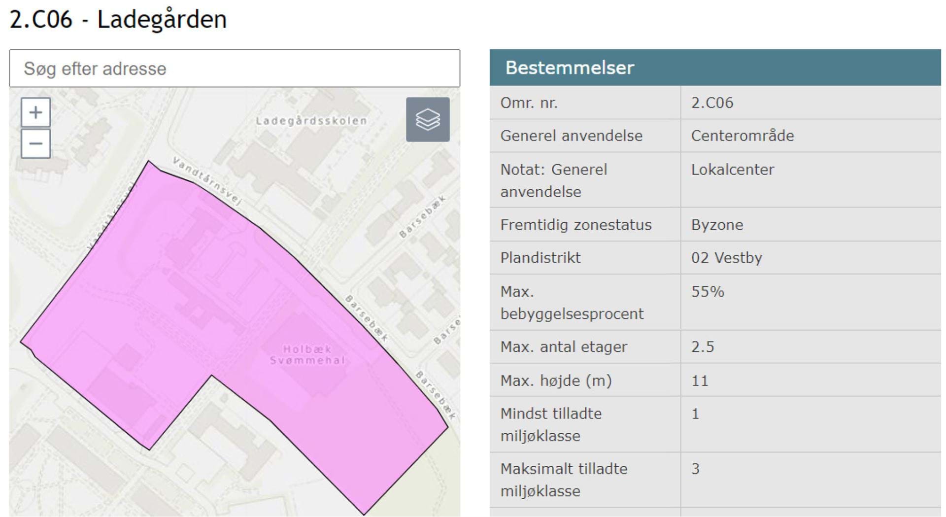 Lokalplanen er i overensstemmelse med gældende Kommuneplanramme 2.C06, der udlægger arealet til centerområde, med en maks. bebyggelsesprocent på 55 og bygninger i maks. 11 m højde, 2,5 etager
