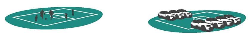 Den fælles parkeringsplads inden for delområde II kan indeholde flere funktioner.