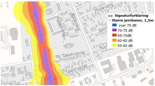 Støjkort over støj fra jernbane.