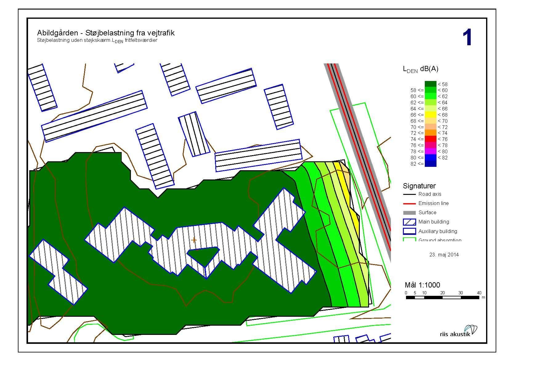 - Vejtrafikstøj: Lden 58 dB