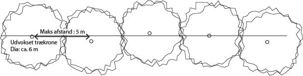 Trærækken skal bestå af træarter, der i udvokset stand har en gennemsnits maks. højde på 3-8 m, og en trækrone der kan opnå en horisontal diameter på min. 6 m. Træerne skal placeres med en individuel afstand på maks. 5 m.