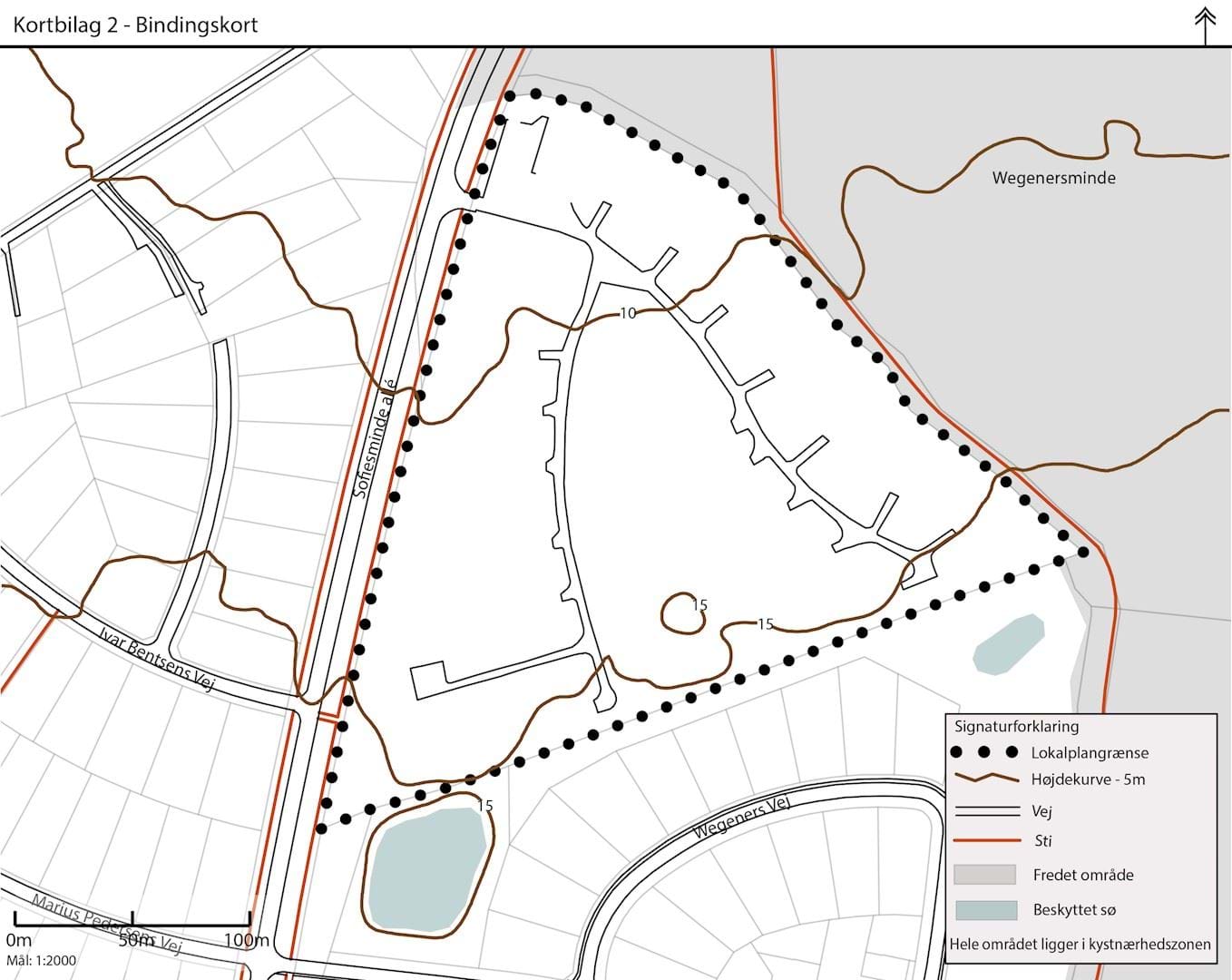 Mod nord og øst grænser planområdet op til det fredede kulturlandskab Wegenersminde. Overgangen mellem de to områder er sikret med et beplantningsbælte.