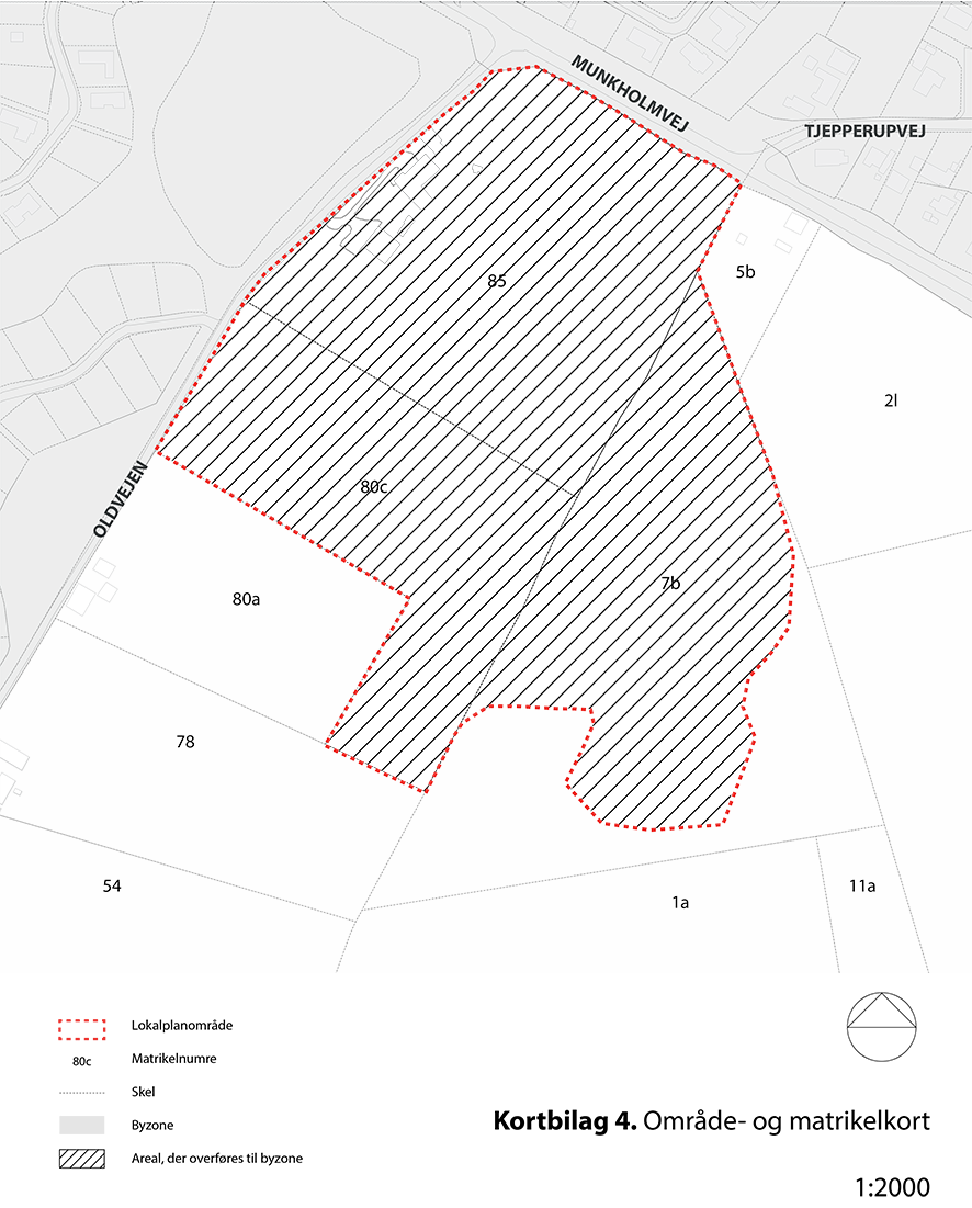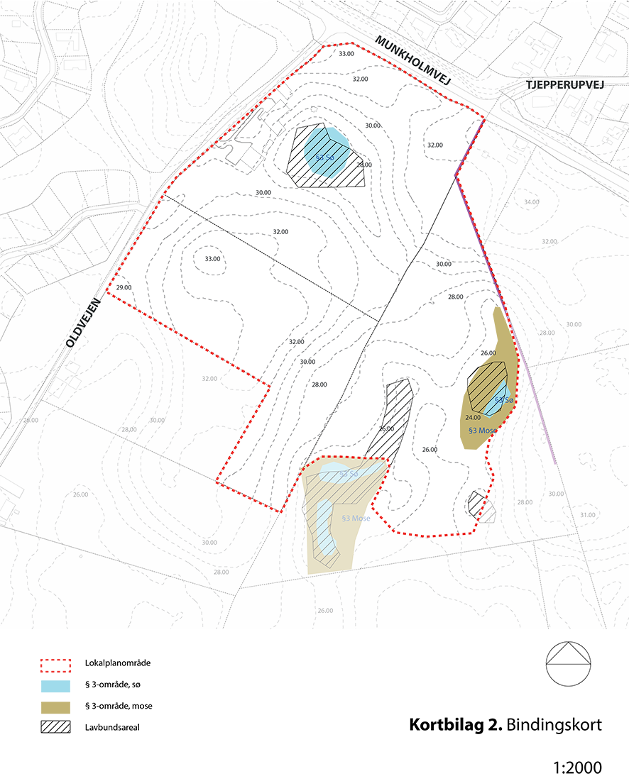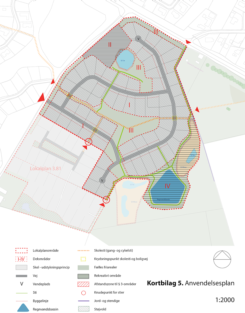 Kortbilagene herunder hører til lokalplanens bestemmelser og er juridisk bindende i forhold til de fremtidige forhold i planområdet.