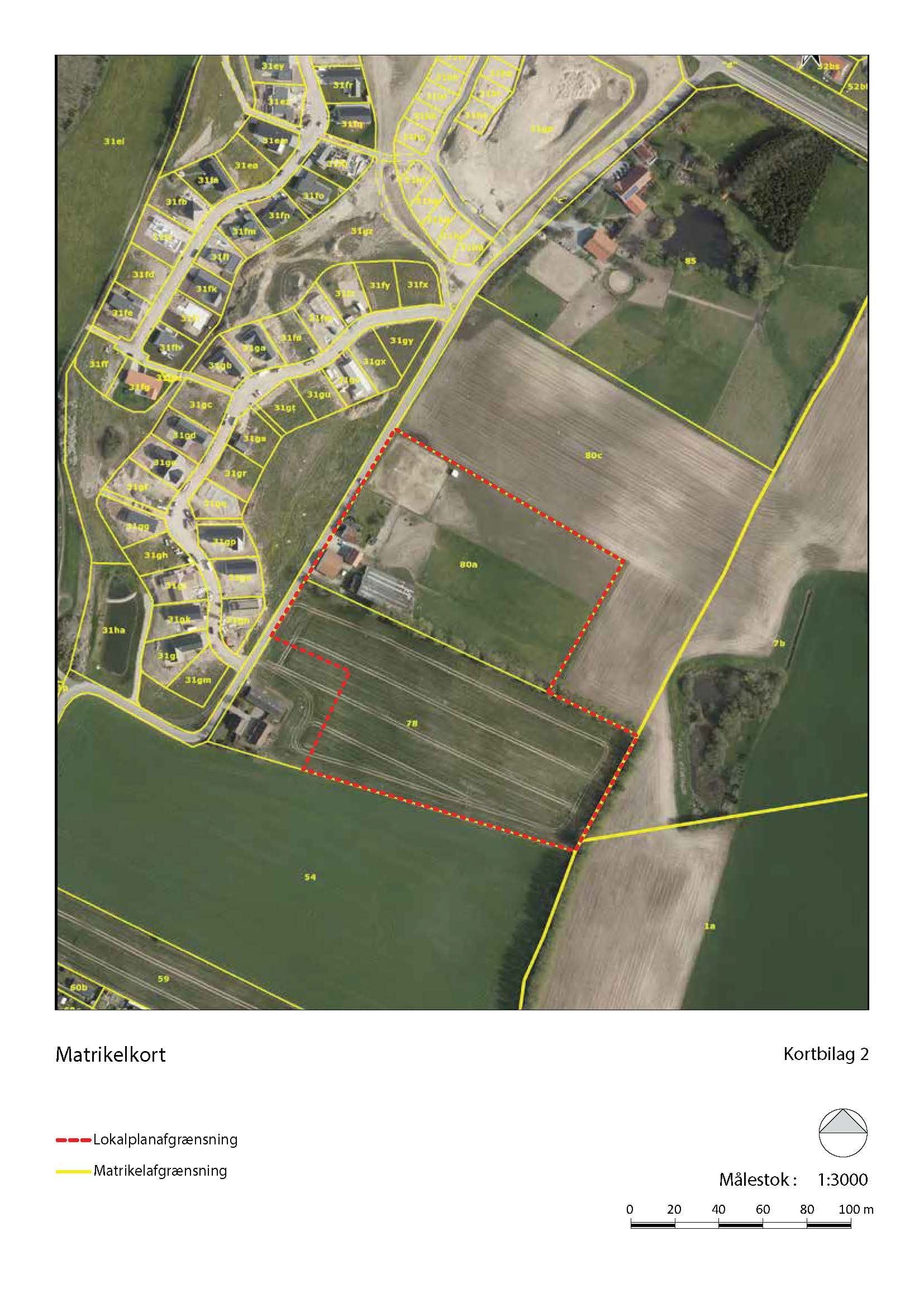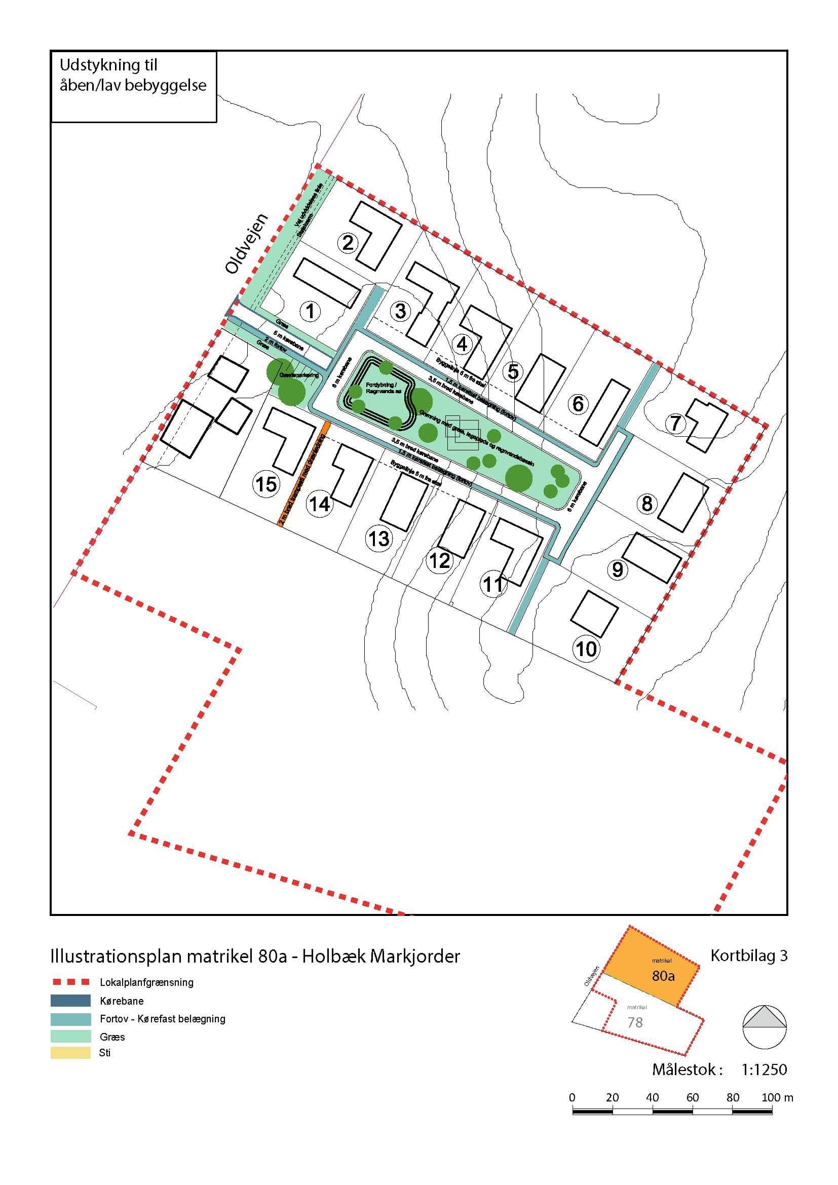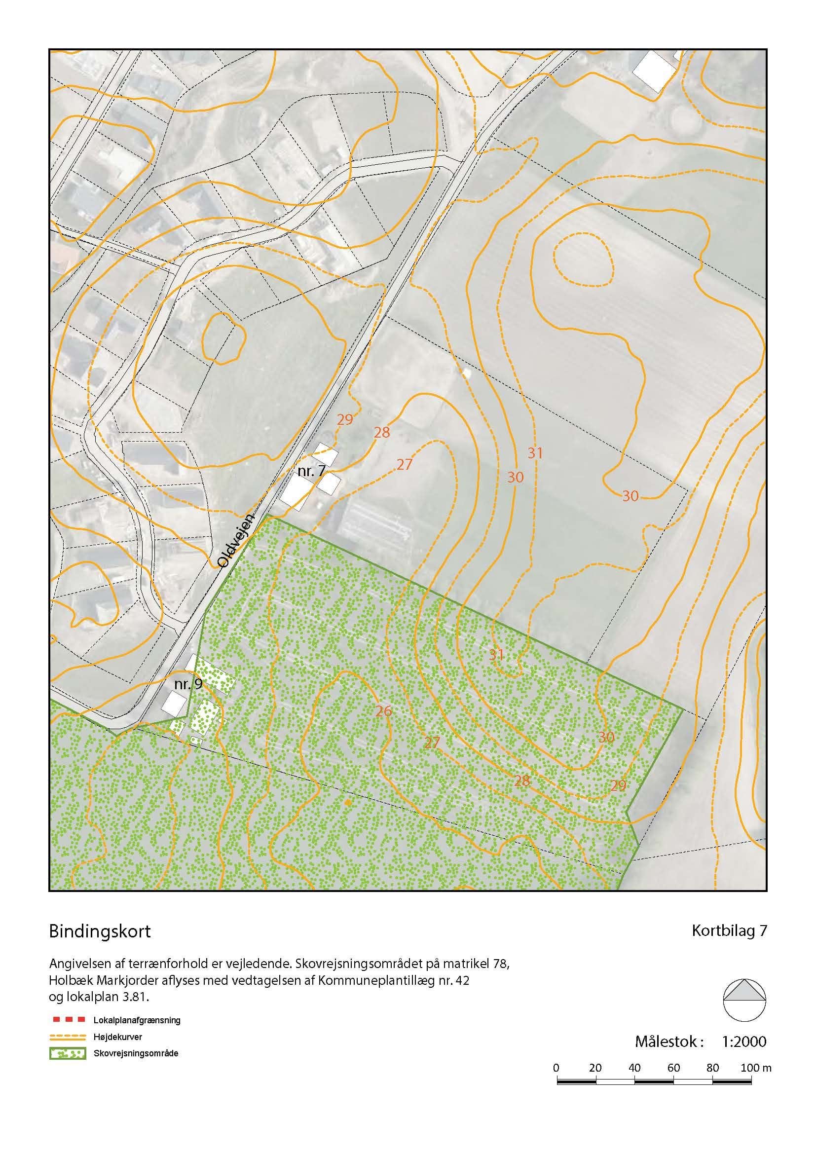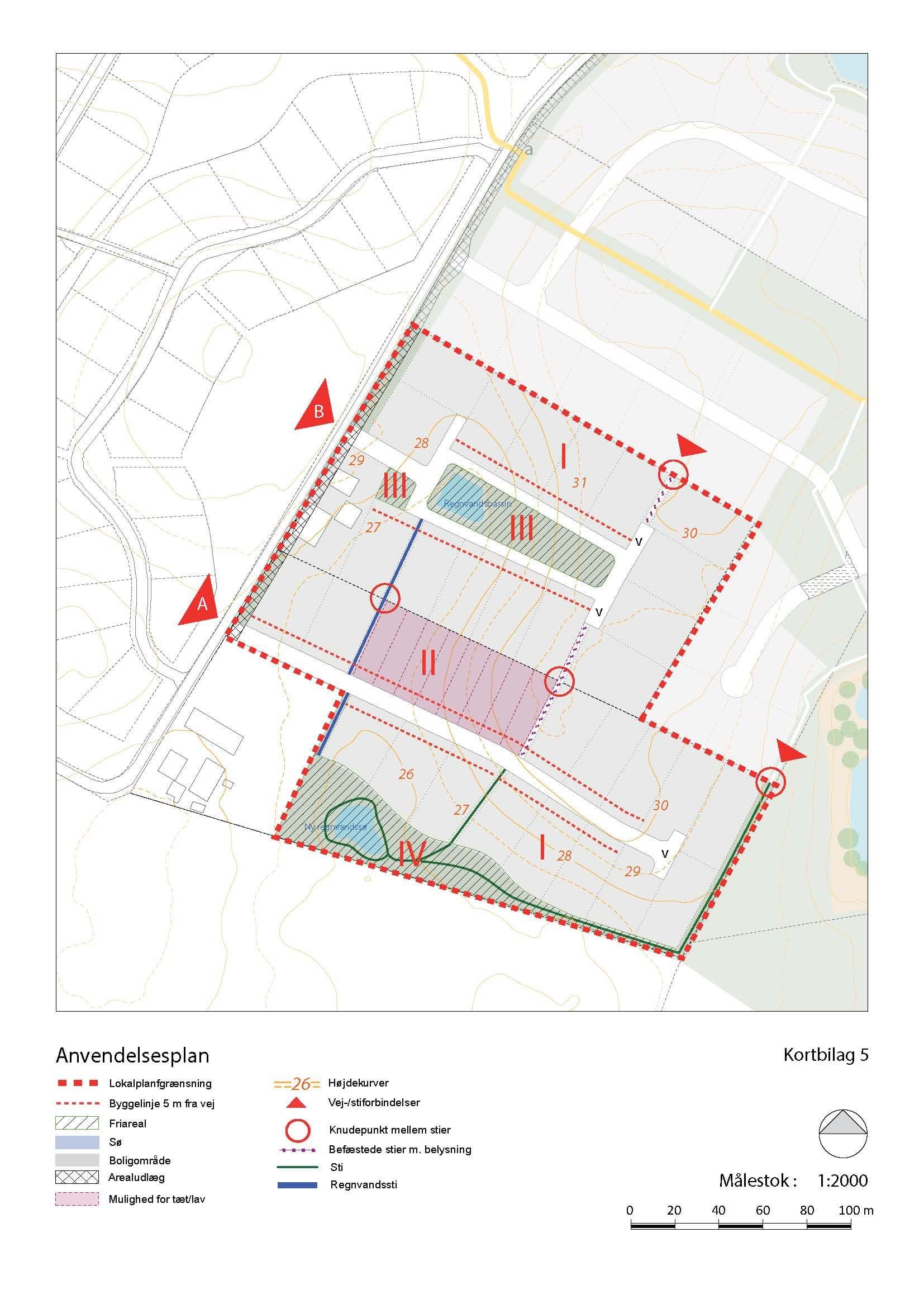 Kortbilagene herunder hører til lokalplanens bestemmelser og er juridisk bindende i forhold til de fremtidige forhold i planområdet.