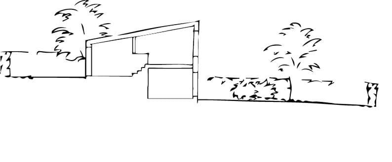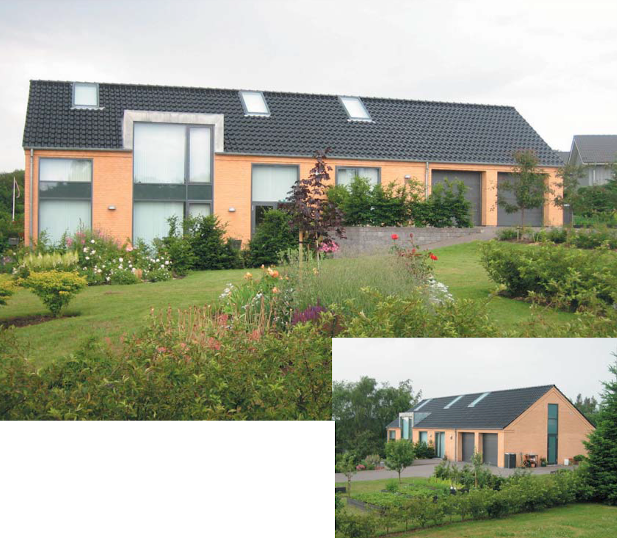 - Bebyggelse på tværs af højdekurverne kan give et hus med forskudte niveauer og en have, der ikke kræver så store terrænbearbejdninger.