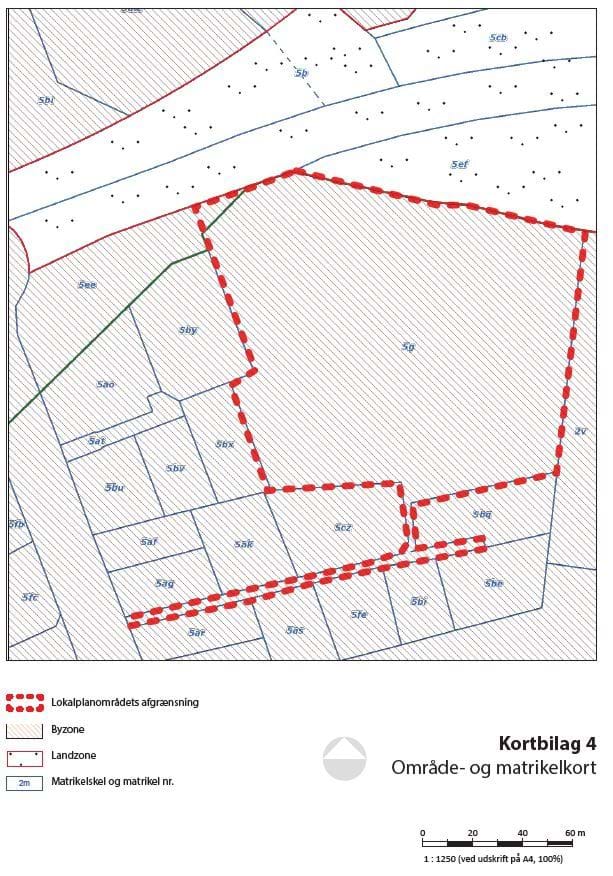 Kortbilagene herunder hører til lokalplanens bestemmelser og er juridisk bindende i forhold til de fremtidige forhold i planområdet.