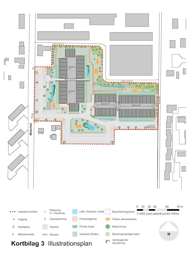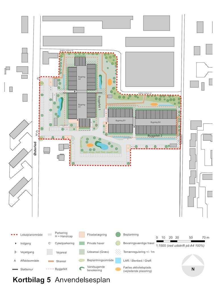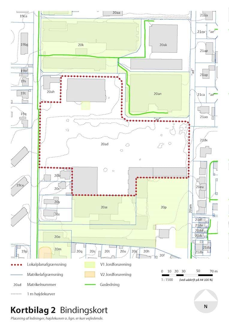 Kortbilagene herunder hører til lokalplanens bestemmelser og er juridisk bindende i forhold til de fremtidige forhold i planområdet.