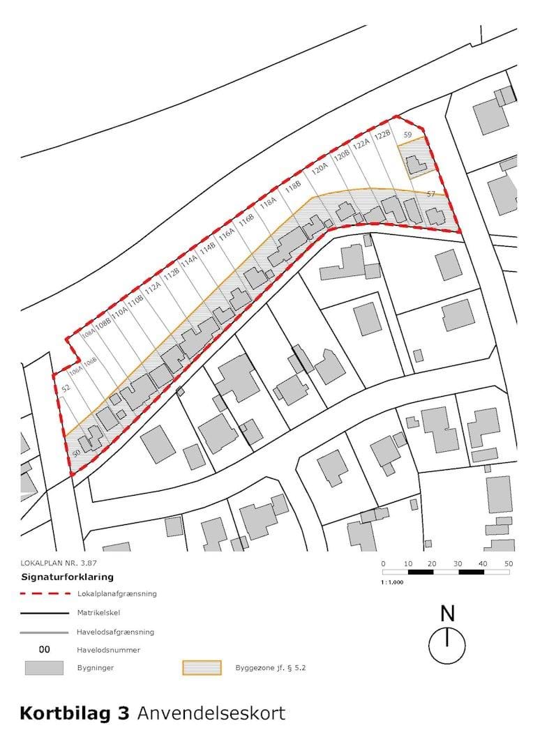 Kortbilagene herunder hører til lokalplanens bestemmelser og er juridisk bindende i forhold til de fremtidige forhold i planområdet.