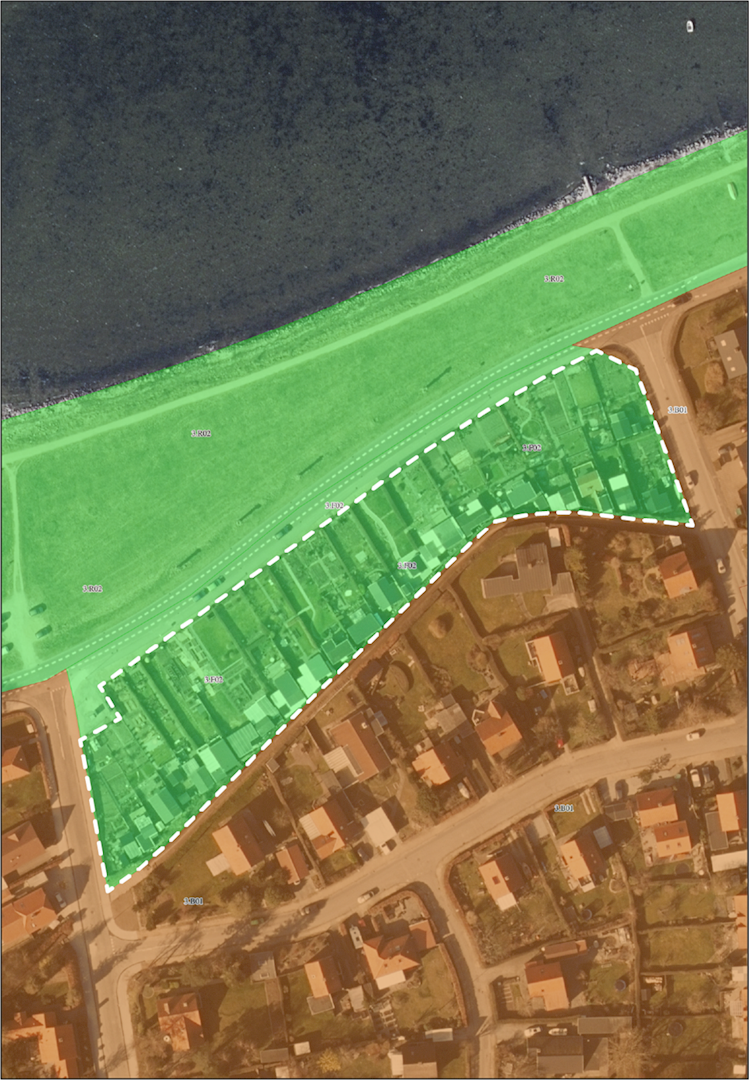 Lokalplanen ligger indenfor kommuneplanramme nr. 3.F02 – Strandmøllevej/ Orøvej. Området er udlagt til rekreativt formål, herunder kolonihaver, og giver mulighed for en bebyggelsesprocent på 15% og en maksimal højde på 3 meter.