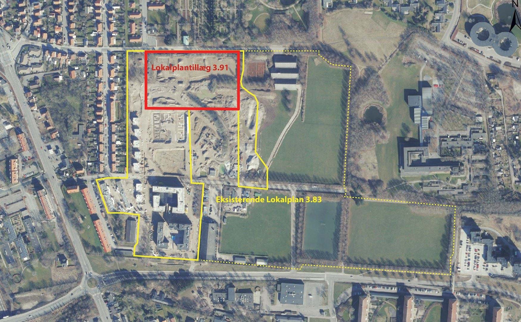 Lokalplan 3.91 er et tillæg til gældende Lokalplan 3.83 og omfatter kun en mindre del af det samlede område inden for Lokalplan 3.83. Lokalplantillæggets område udgør godt 1 ha af den nordlige del af områdets samlede ca. 20 ha., svarende til de udlagte byggefelter BF8-BF11 i gældende Lokalplan 3.83.