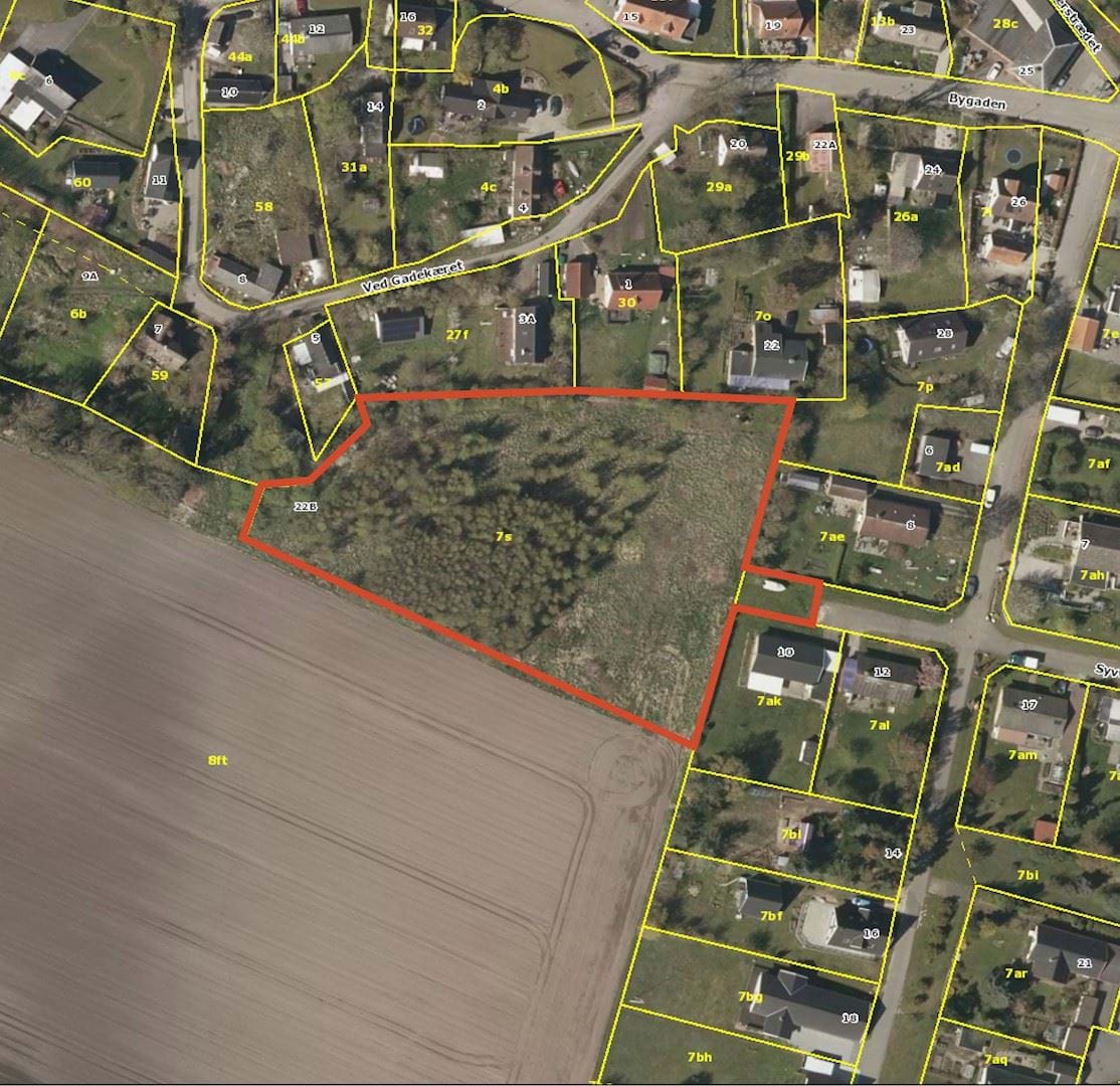 Grunden henligger ubebygget med en del selvgroet skovlignende beplantning. Mod nord, vest og mod øst ligger eksisterende parcelhusbebyggelse af blandet karakter, og mod syd ligger åbne marker.