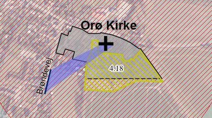 Der er registreret bevaringsværdige indkig igennem lokalplanområdet til Orø Kirke fra Brøndevej markeret på kortudsnittet herunder. Lokalplanen giver ikke mulighed for ny bebyggelse indenfor lokalplanområdet og indkigget til Orø Kirke vil derfor ikke blive mindsket i forbindelse med denne planlægning.