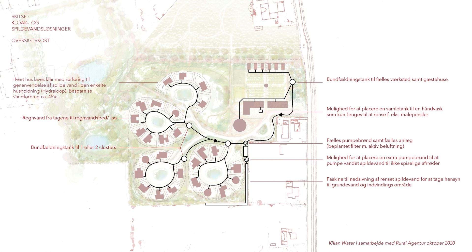 Området skal i følge Holbæk Kommunes Spildevandsplan udelukkende spildevandskloakeres. Det er en mulighed, at grundejer(e) selv håndterer spildevandet, såfremt det er afklaret med Fors A/S. Hvis ikke, skal spildevandet ledes til den offentlige spildevandsledning og tilsluttes det offentlige anlæg. Den offentlige spildevandsledning løber, sammen med en trykledning (her er Fors A/S ligeledes ejer), tværs over lokalplanområdet, jf. kortbilag 2.