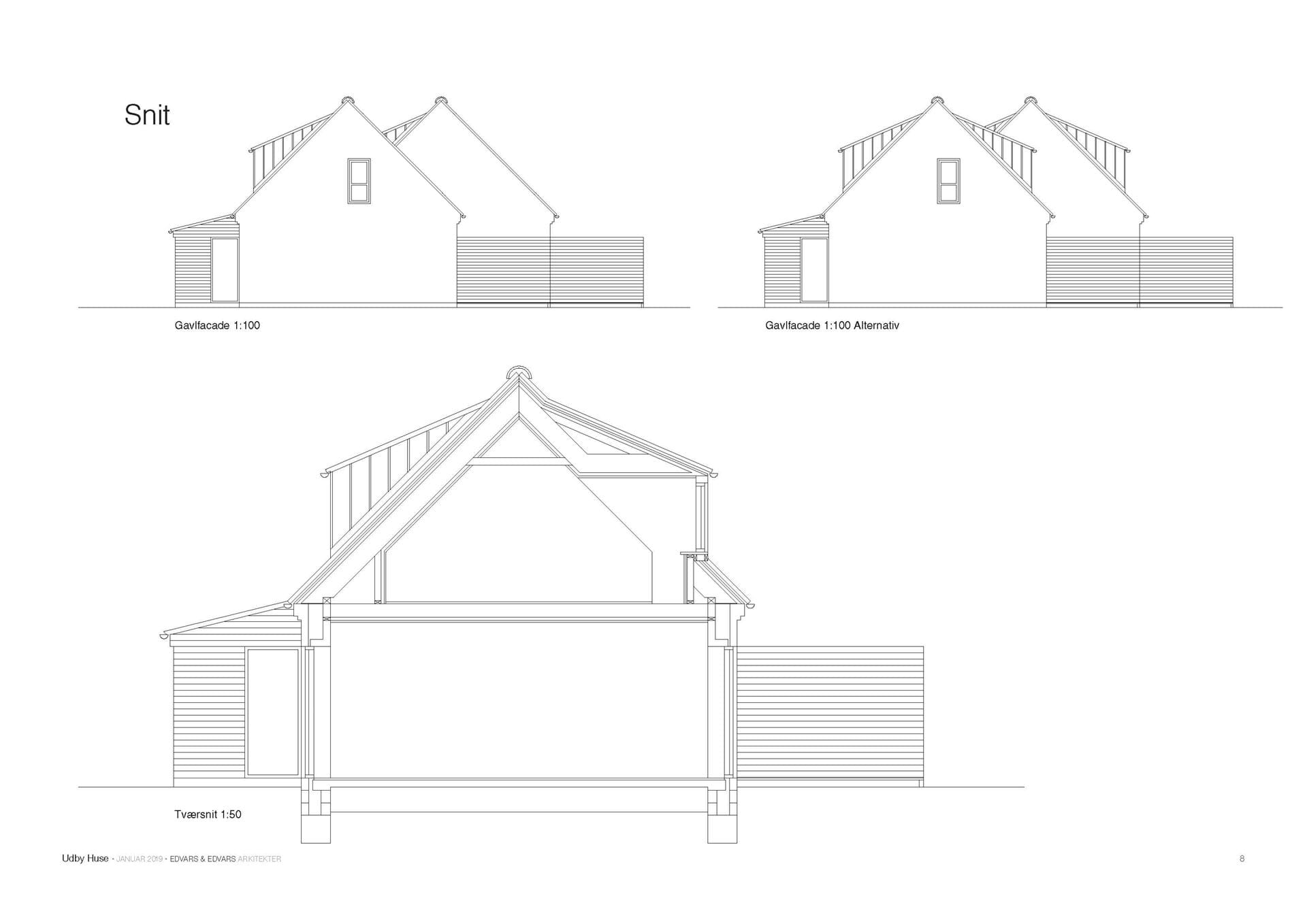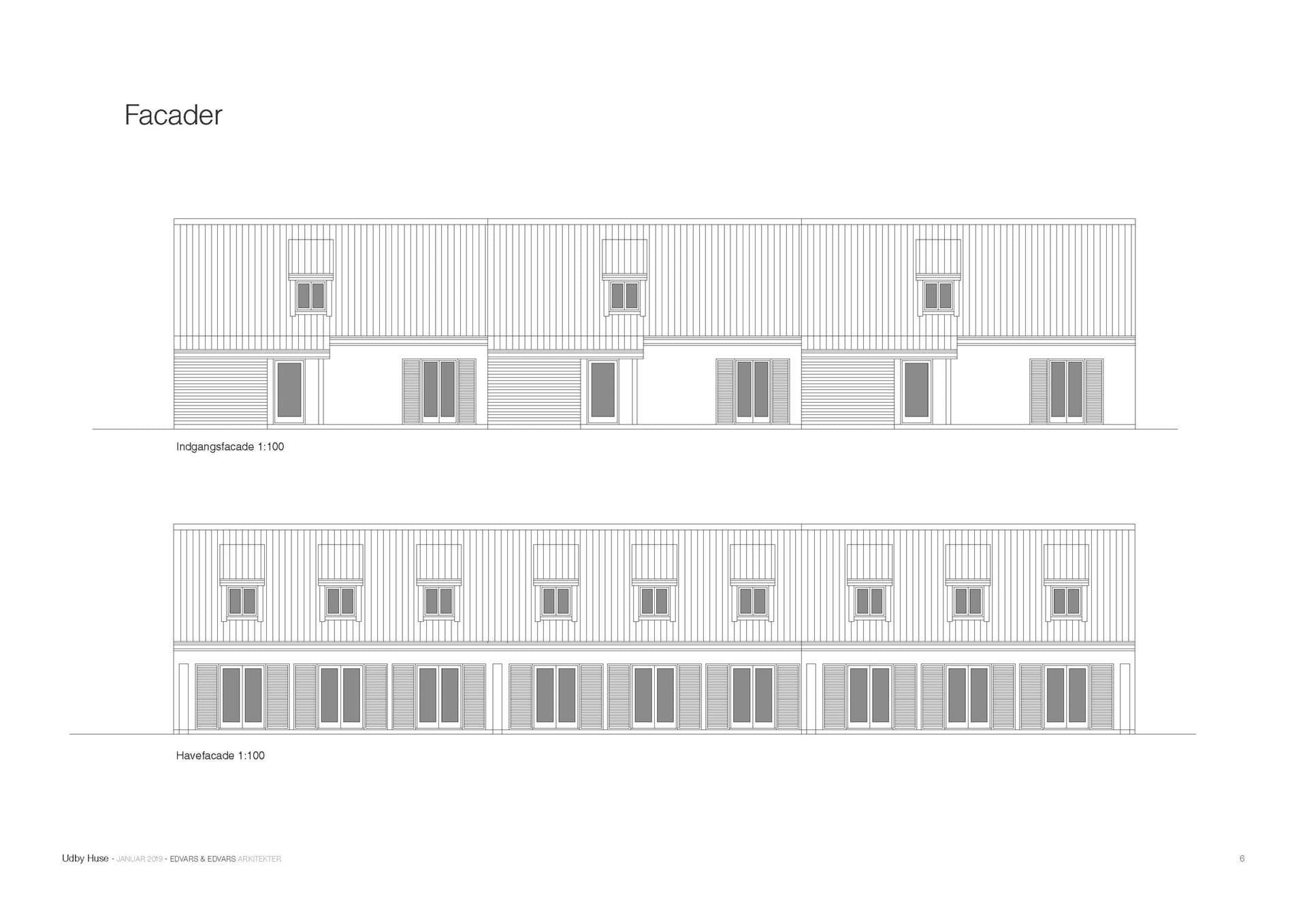 Med regulerende bestemmelser om bygningernes placering og udtryk søges bebyggelsen udformet, så den giver en harmonisk oplevelse af Udby når man ankommer fra syd. Arkitekturen og husenes profil vil med den høje taghældning fremstå tilpasset Udbys bevaringsværdige kulturmiljø. Arkitektonisk fremstår bebyggelsen pudset i enten hvid, gul eller rød jf. bilag 12, med gesimsbånd, røde tegltage med 45 graders taghældning. Bebyggelsen planlægges som étplansboliger med mulighed for at udnytte tagetagen som et uudnyttet potentiale for fremtidig udvidelse.