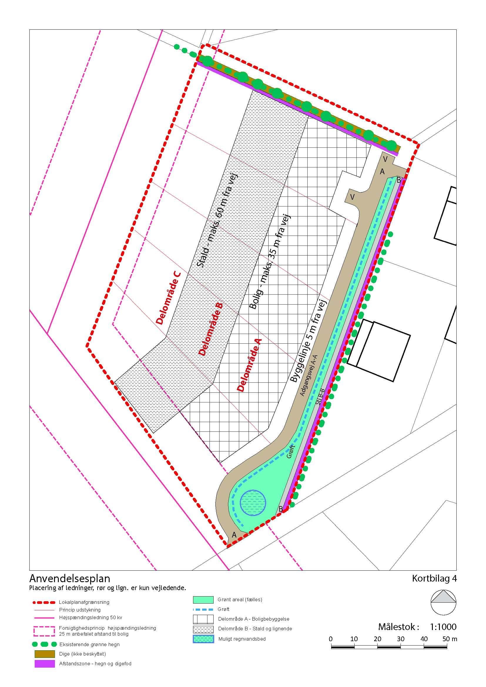 Kortbilagene herunder hører til lokalplanens bestemmelser og er juridisk bindende i forhold til de fremtidige forhold i planområdet.